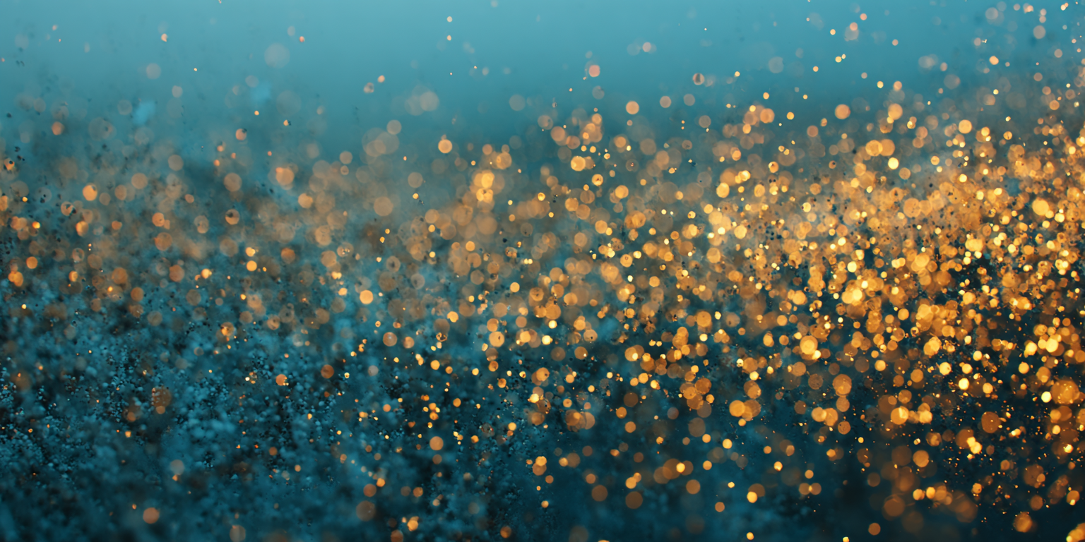 warm rain of light: tiny luminous particles drifting through dusk-blue fog, dreamy, cinematic haze, gentle gold flecks, deep navy background, tranquil, abstract minimal --chaos 5 --ar 2:1 --raw --stylize 500