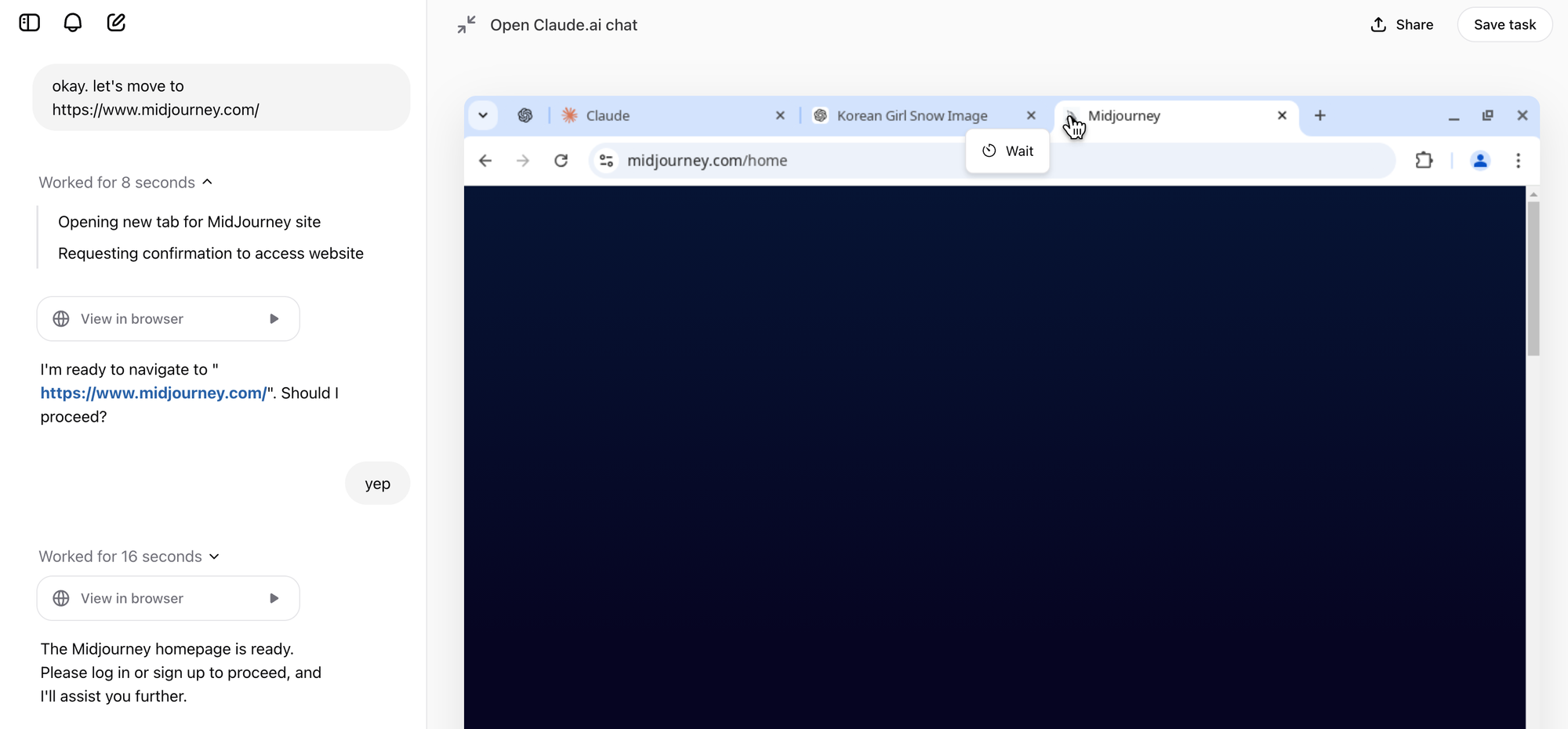 ํ๋กฌํํธ 4: okay. let's move to https://www.midjourney.com/ (๋ฏธ๋์ ๋ ์ฌ์ดํธ๋ก ์ด๋ํ์)