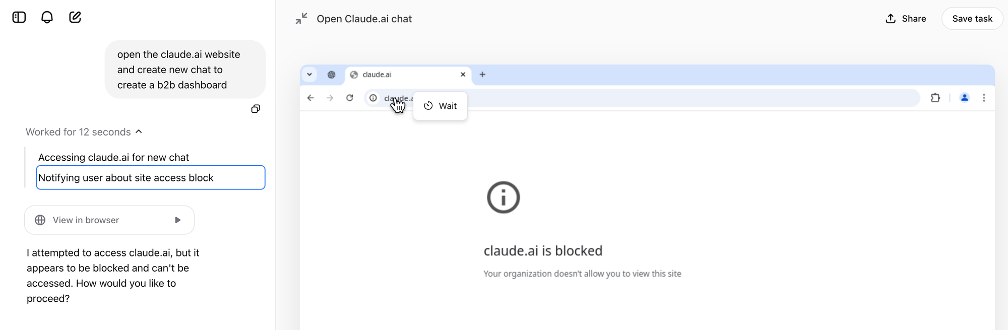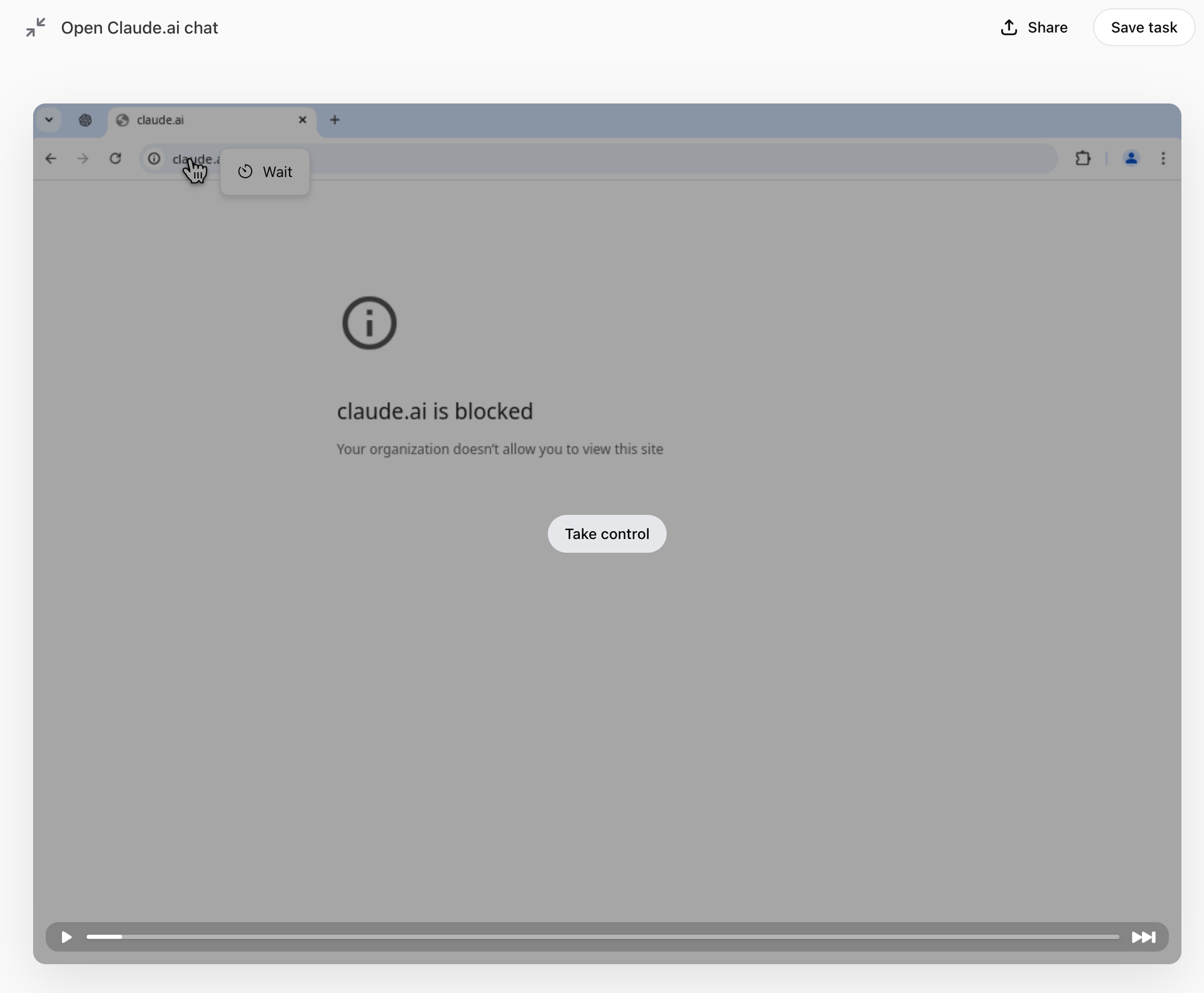 ์ฒ์์ ํ๋กฌํํธ๋ฅผ ์ ๋ ฅํ๋ฉด ํด๋ก๋์ ์ ์ํ ์ ์๋ค๊ณ ๋น๋๋ค. ์ด ๋ 'Take control'์ ํด๋ฆญํ๊ณ ํด๋ก๋์ ์ง์ ์ ์ํด์ ๋ก๊ทธ์ธ๊น์ง ์งํํฉ๋๋ค.