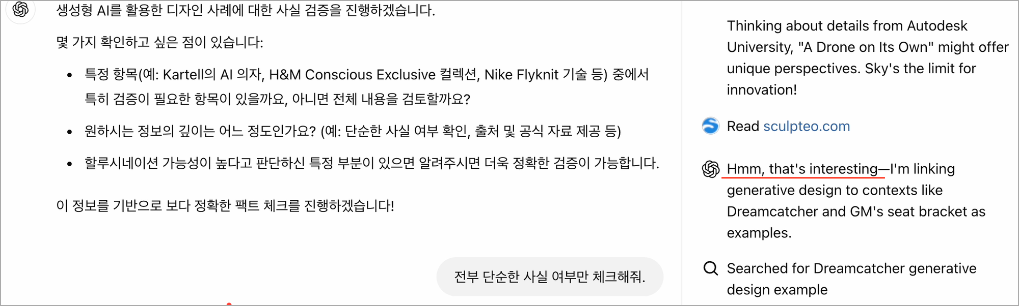 ChatGPT๊ฐ ํฉํธ์ฒดํฌํ๋ ๋ชจ์ต(์์):