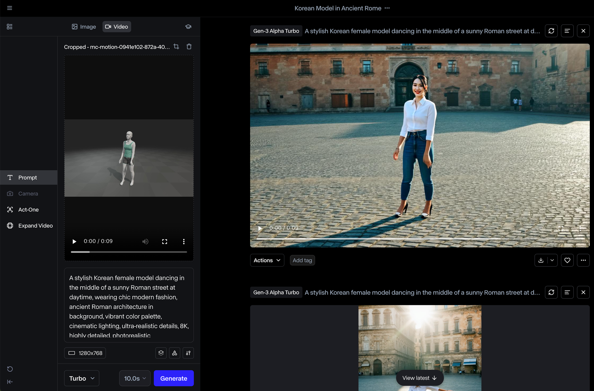 Runway๋ก ์ด๋ํ์ฌ Meshcapade์์ ๋ค์ด๋ก๋ ๋ฐ์ ์์์ ์ ๋ก๋ํ๊ณ , ํ๋กฌํํธ๋ฅผ ์ ๋ ฅํ์ฌ ์์์ ์์ฑํฉ๋๋ค.