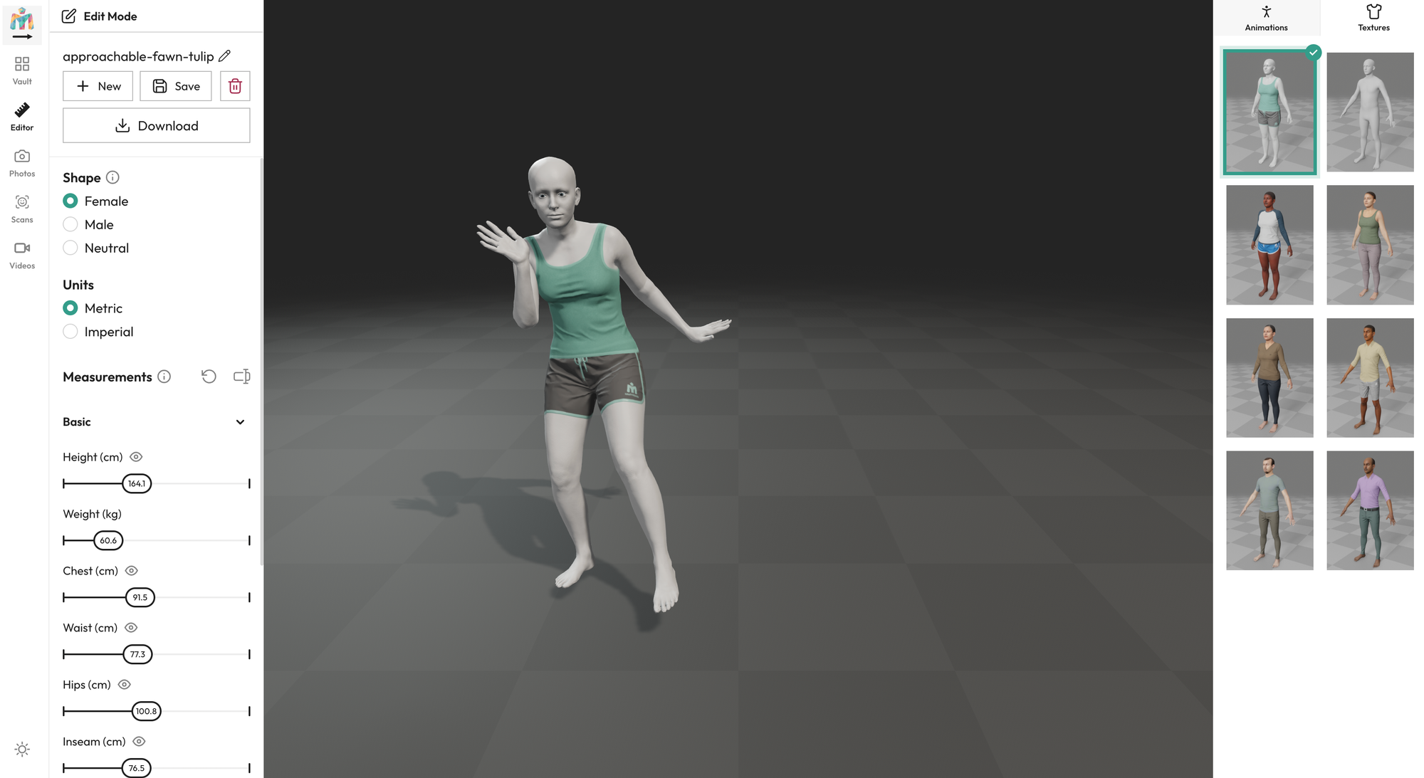 Open in editor๋ฅผ ํด๋ฆญํ๋ฉด ์ฑ๋ณ/ํค/๋ชธ๋ฌด๊ฒ ๋ฑ์ ์ค์ ํ ์ ์์ต๋๋ค. ์์์ ์ ํํ ์๋ ์์ง๋ง, ๋ค์ํ์ง๋ ์์ต๋๋ค. ์ด์ฐจํผ Runway์์ ๋ณํํ ๊ฒ์ด๋ฏ๋ก ์์์ ํฌ๊ฒ ๋ฌธ์ ๋์ง ์์ต๋๋ค.