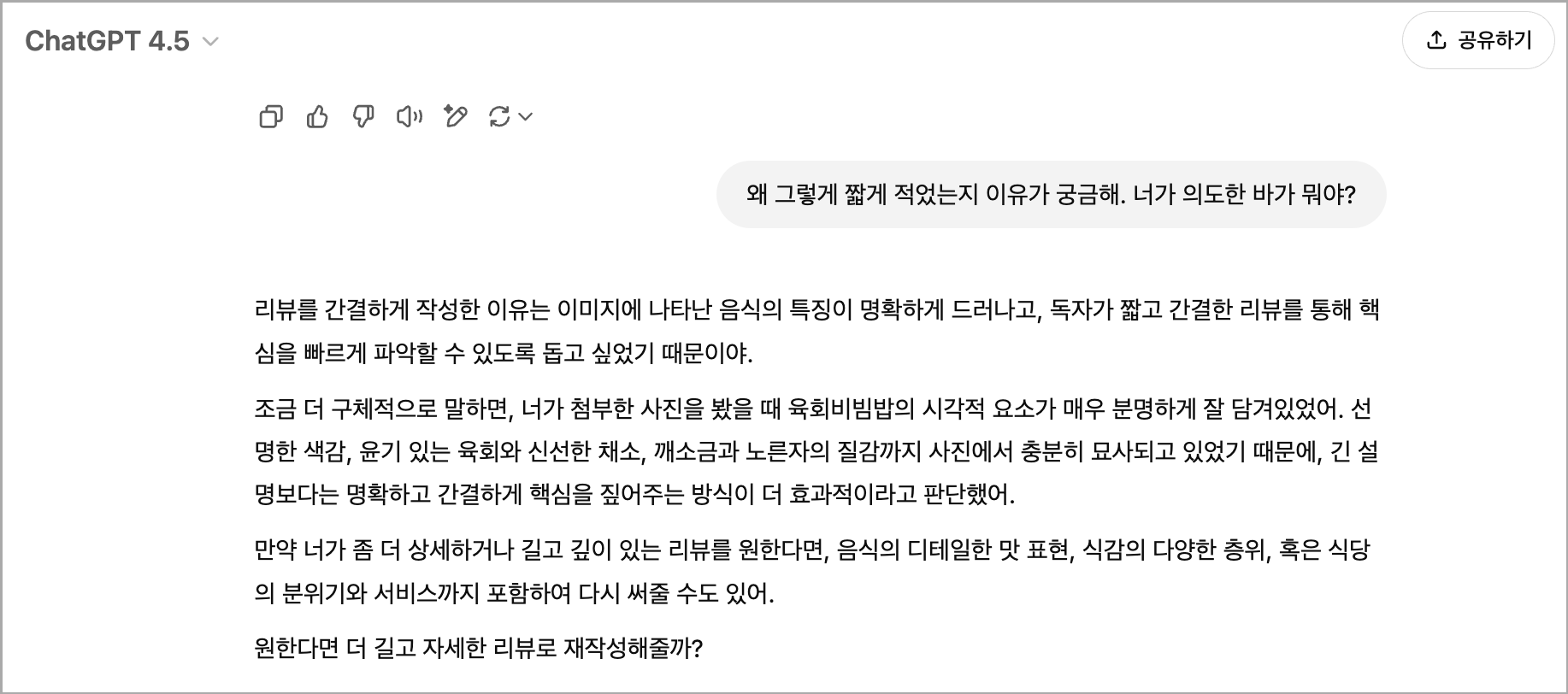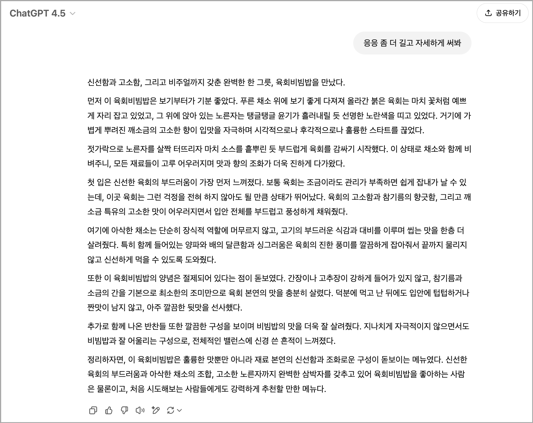 λ²μ κ²°κ³Ό(GPT-4.5): GPT-4oμ λΉν΄ λ¬Έμ₯μ΄ μμ°μ€λ¬μ, μ μ½νλλ€.