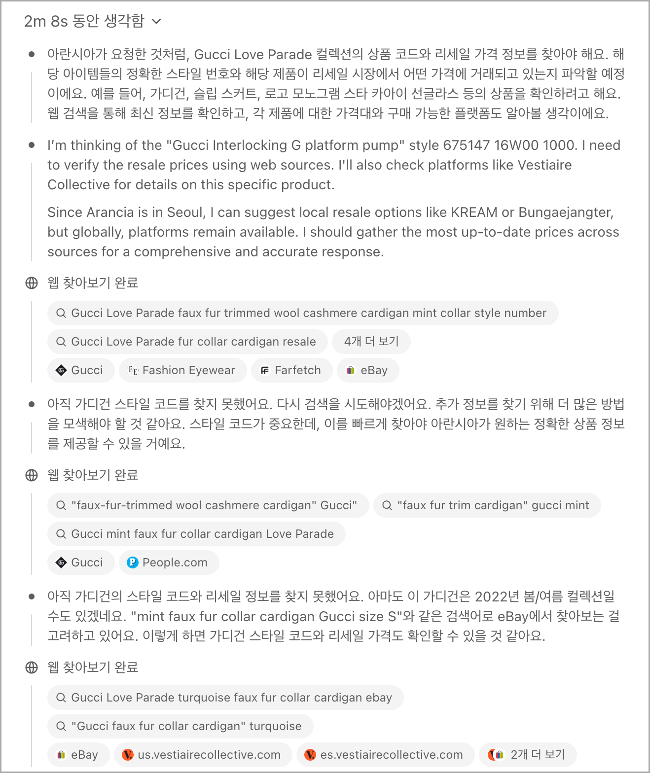 - λ₯리μμΉ κΈ°λ₯ ν΅ν©: λͺ ν μ· μ΄λ―Έμ§λ₯Ό κ°μ§κ³ o3λ₯Ό μ€νν΄λ΄€μ λ, λ₯리μμΉ κΈ°λ₯μ΄ ν΅ν©λ μΈμμ λ°μμ΅λλ€. μ΄λ―Έμ§λ₯Ό μΈμνκ³ μ 보λ₯Ό νμν΄μ νλ‘ μ 리ν΄μ£Όλ λ΅λ³μ λ³΄κ³ , μ¬λ‘λ₯Ό μ°Ύκ³ λΆμνλ μΌμ μ΄μ AIμκ² λ§‘κ²¨λ λ κ² κ°λ€λ μκ°μ΄ λ€μμ΅λλ€.