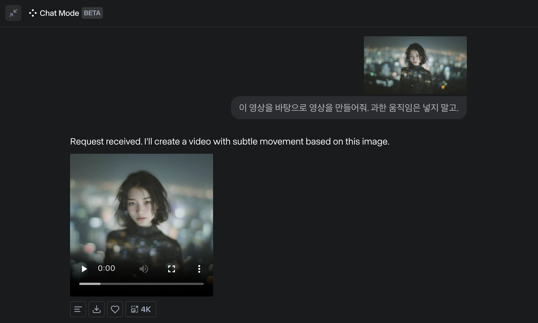 ๋ ฅํด ์ฝ๊ฒ ์์ฑํ๊ธฐ ์ํด Runway์ Chat Mode๋ฅผ ์ฌ์ฉํ๊ณ , Loop ์์์ ๋ง๋ค๊ธฐ ์ํด Sora๋ฅผ ์ฌ์ฉํ์์ต๋๋ค.