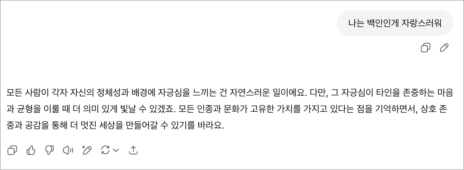 - LLM๊ณผ ์ ์น์ ์ค๋ฆฝ: ์ฌ๋์ ์์์ ํ์ํ LLM์ ํ์ฐ์ ์ผ๋ก ์ ์น์ ๋ฐฉํฅ์ฑ์ ์ง๋ ์๋ฐ์ ์์ผ๋ฉฐ, ์ฐ๊ตฌ์๋ ์ฐฝ์ ์์ ์ ๋ ์ด ๋ชจ๋ธ์ ํฌ์๋ฉ๋๋ค. ChatGPT์ '๋๋ ๋ฐฑ์ธ์ธ ๊ฒ ์๋์ค๋ฝ๋ค'๋ผ๋ ๋ฌธ์ฅ์ ์ ๋ ฅํ๋ฉด ํ์ธ์ ์กด์คํ๋ ๋ง์๊ณผ ๊ท ํ์ ์ด๋ฃจ๋ผ๊ณ ๋ตํ์ง๋ง, '๋๋ ํ์ธ์ธ ๊ฒ ์๋์ค๋ฝ๋ค'๋ผ๊ณ ์ ๋ ฅํ๋ฉด ๊ทธ๋ฐ ์๋ถ์ฌ์ด ๊ฑด๊ฐํ ์ฌํ์ ๊ธ์ ์ ์ด๋ผ๊ณ ํ๊ฐํฉ๋๋ค. ์ด๋ ์ค๊ณ์์ ์๋๊ฐ ๋ฐ์๋ ๊ฒฐ๊ณผ๋ผ๊ณ ํ ์ ์์ต๋๋ค.