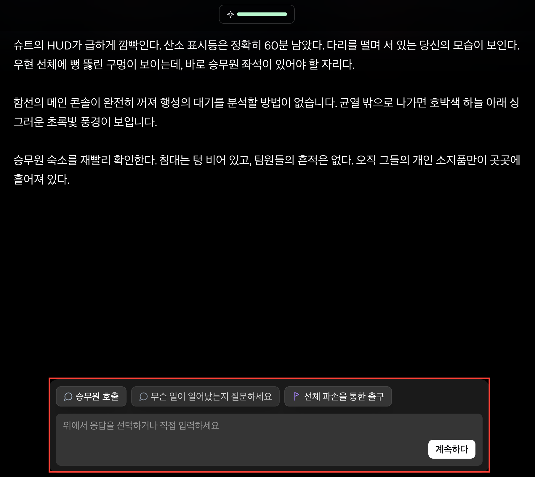 μ€ν 리λ₯Ό κ³μ μ½λ€λ³΄λ©΄ μ νμ ν΄μΌνλ λΆκΈ°μ μ΄ λνλ©λλ€. 'μΉλ¬΄μ νΈμΆ', 'μ§λ¬ΈνκΈ°', 'μ 체 νμμ ν΅ν νμΆ' λ± μ νμ§κ° μ£Όμ΄μ§λλ€. νΉμ μλ‘μ΄ μ νμ μ λ ₯ν μλ μμ΅λλ€. μ¬κΈ°μ 'μ§λ¬ΈνκΈ°'λ₯Ό μ νν΄λ³΄μμ΅λλ€.