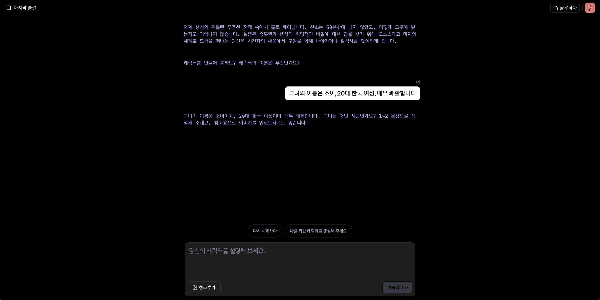 μ μ λ€ κ²μμ λ±μ₯ν μΊλ¦ν° μλ°νκ° μμ±λ©λλ€. μ¬κΈ°μ Gen-4 References κΈ°λ₯μ΄ μ μ©λμ΄ μ λ‘λν μ΄λ―Έμ§μ μ μ¬ν μΈλ¬Όμ λͺ¨μ΅μ΄ μμ±λμμ΅λλ€. κ²μ μ§νμ κ³μνκΈ° μν΄ 'κ³μνλ€(Continue)' λ²νΌμ ν΄λ¦ν©λλ€.