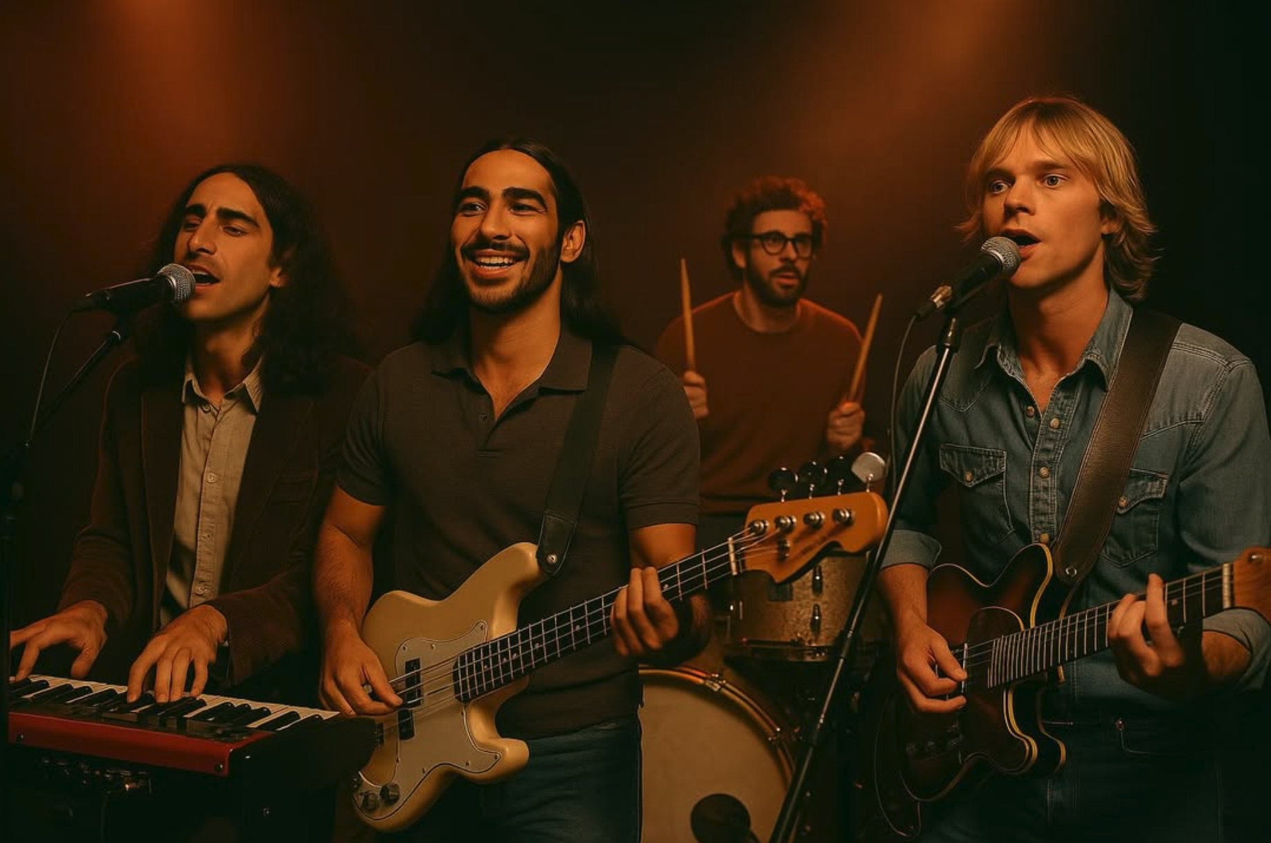 Spotifyμ μ§μ μ λ‘λν μν°μ€νΈ μκ°κΈμ λ°λ₯΄λ©΄, μ΄ AI Bandλ 보컬과 λ©λ‘νΈλ‘ μ λ΄λΉνλ κ²μ΄λΈ ν¨λ‘μ°, κΈ°ν리μ€νΈ λ λ μ¨μ€νΈ, μ λμ¬μ΄μ μ°μ£Όμ λ§μΌλ‘ λ μΈμ€, κ·Έλ¦¬κ³ νμ κΈ° μ°μ£Όμ μ€λ¦¬μ¨ β리μ€β λΈ λ§λ₯΄λ‘ ꡬμ±λμ΄ μμ΅λλ€. 곑μ 70λ λ μ¬μ΄ν€λΈλ¦ μΌν°λν°λΈ λ‘κ³Ό ν¬ν¬ λ‘μ μ§κ°μ μ§λλ©΄μλ νλμ μΈ μΌν°λν°λΈ νμ μ§ν₯ν©λλ€. [Spotifyμμ λ£κΈ°]