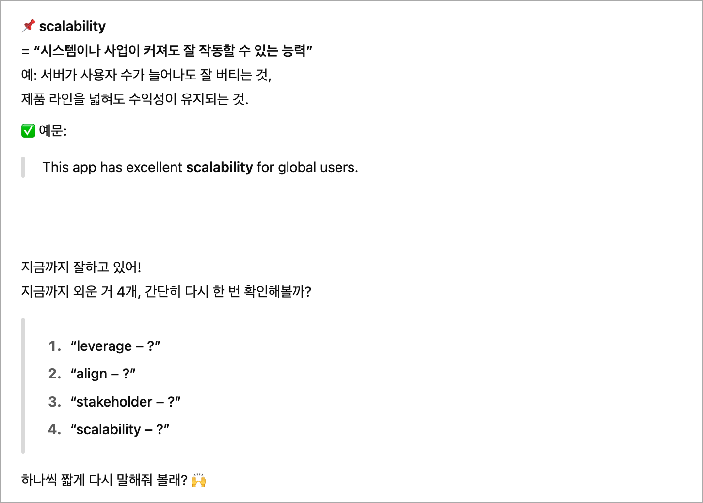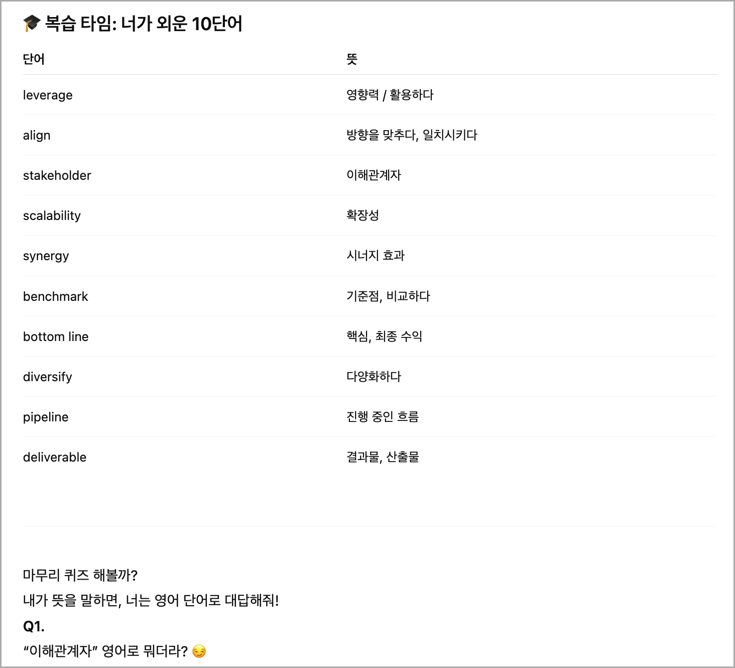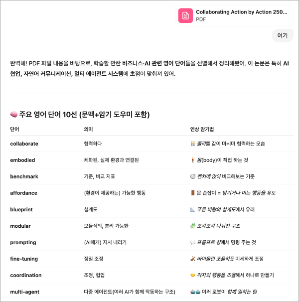 - μ€ν°λ λ©μ΄νΈκ° λ μ±GPT: μ±GPTκ° μ μνλ λ¨μ΄ μ°μλ²μ΄ μμ¬κ°κ·Έ κ°κΈ°λ ν΄μ μμμ΄ λμμ§λ§...μ λ§ κΈ°μ΅μ μ€λν κ² κ°μμ λΆνκΈ°λ ν©λλ€(?). λν PDF νμΌμ μ λ‘λνλ©΄, νμΌ μμ μλ μμ΄ λ¨μ΄λ₯Ό μ 리ν΄μ£ΌκΈ°λ ν©λλ€.