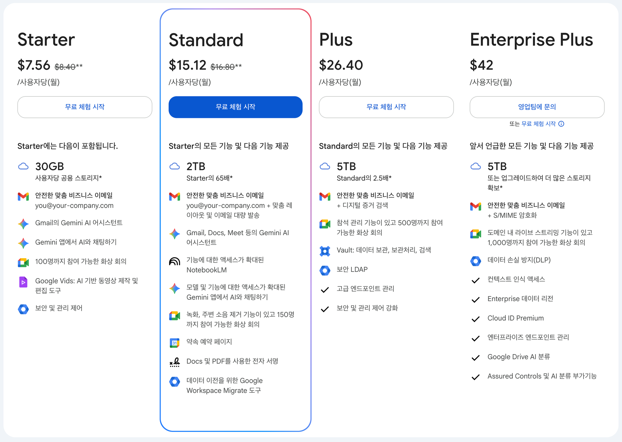 ๋ค๋ง Google Workspace๋ ๋น์ทํ ๊ฐ๊ฒฉ(Plus ์๊ธ์ )์ 5TB์ ์ ์ฅ๊ณต๊ฐ์ ์ง์ํฉ๋๋ค.