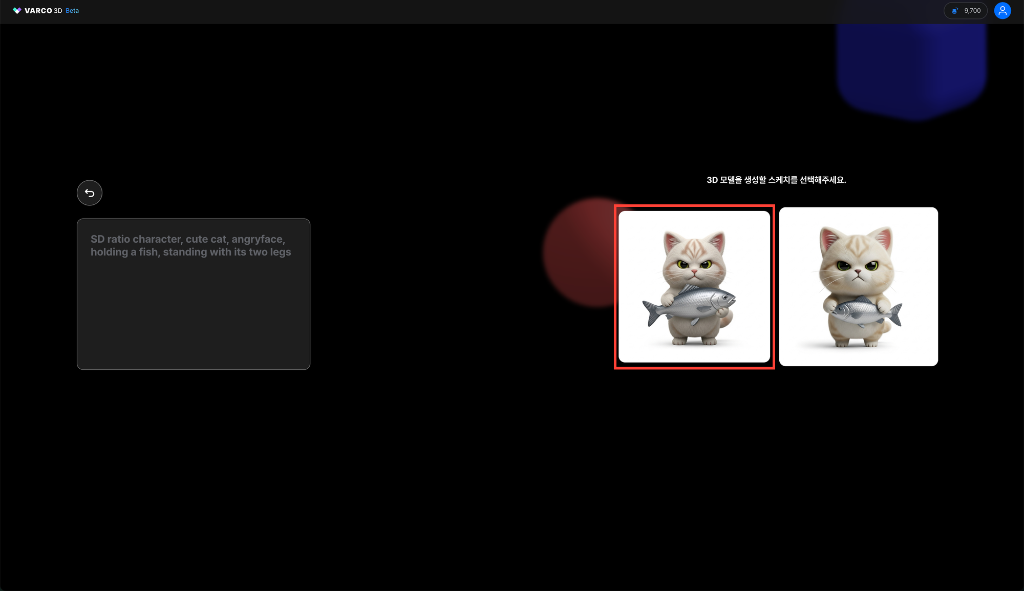 ํ ์คํธ ํ๋กฌํํธ๋ฅผ ์ ๋ ฅํ๋ฉด ๋จผ์ ์ด๋ฏธ์ง๊ฐ ์์ฑ๋ฉ๋๋ค. ์์ฑ๋ ์ด๋ฏธ์ง ์ค ํ๋๋ฅผ ์ ํํฉ๋๋ค.