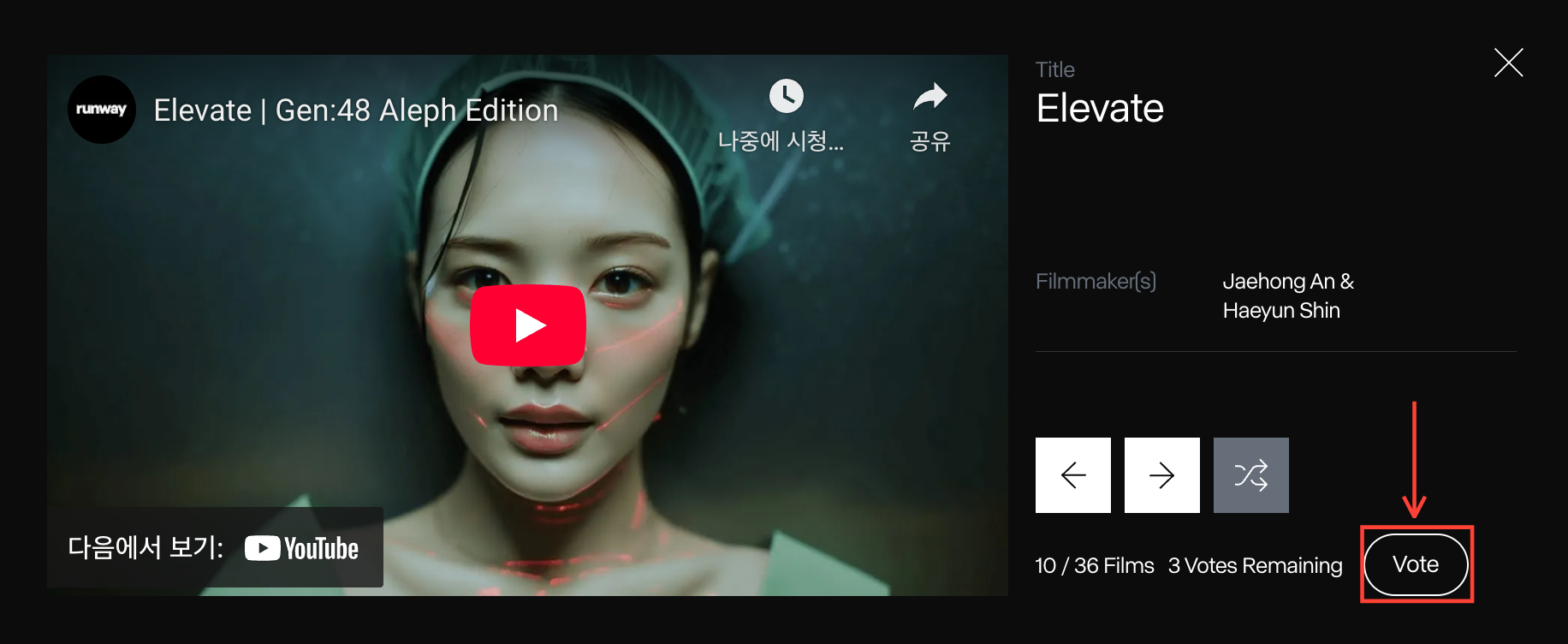 μ λ²νΌμ λλ₯΄μ λ€, 'Vote'λ₯Ό ν΄λ¦νμλ©΄ ν¬ν μ°Έμ¬κ° μλ£λλ©°, 1μΈλΉ μ΅λ 3νΈκΉμ§ ν¬ννμ€ μ μμ΅λλ€. (μ€λ³΅ ν¬νλ λΆκ°λ₯ν©λλ€)