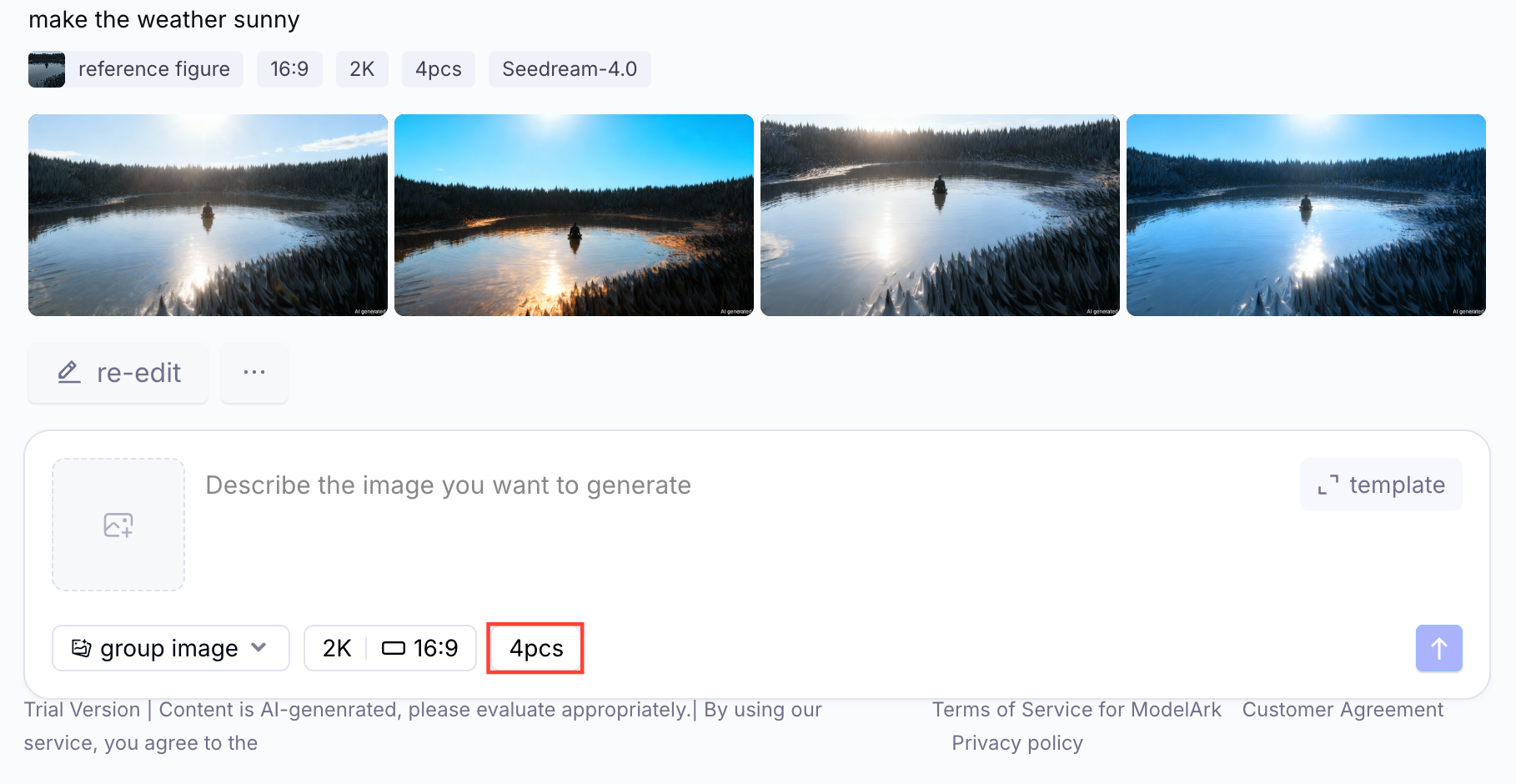 ν둬ννΈλ₯Ό μ λ ₯νλ©΄ λ€μκ³Ό κ°μ΄ 4μ₯μ μ΄λ―Έμ§κ° μμ±λλ©°, μμ±λλ κ²°κ³Όλ¬Ό μ«μλ₯Ό λ³κ²½νκ³ μΆμΌμλ€λ©΄ μλ νμλ '4pcs'λ₯Ό ν΄λ¦νμ¬ μ₯ μλ₯Ό μ‘°μ ν μ μμ΅λλ€.