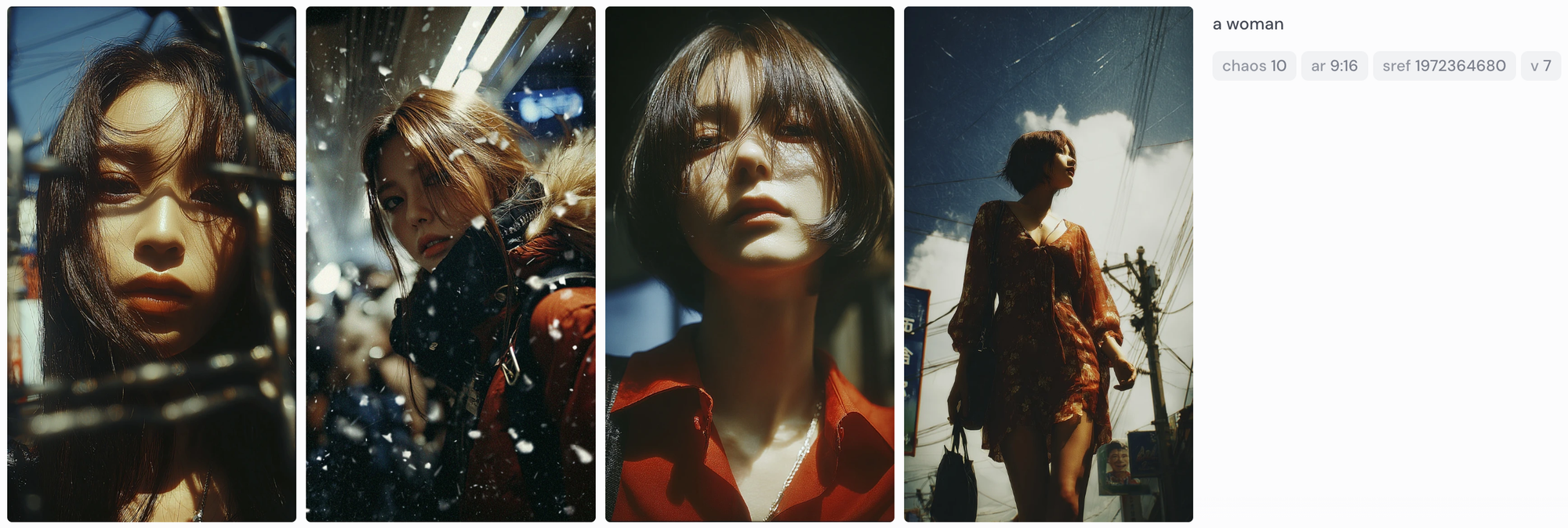 ν΄λΉ μ½λλ₯Ό μ¬μ©ν΄ ν둬ννΈλ₯Ό 'woman'μ΄λΌκ³ λ§ μ λ ₯νλ©΄, λ€μκ³Ό κ°μ΄ μμ±λ 4μ₯μ μ΄λ―Έμ§ λͺ¨λμμ λμμΈ μ¬μ±μ΄ λνλ©λλ€.