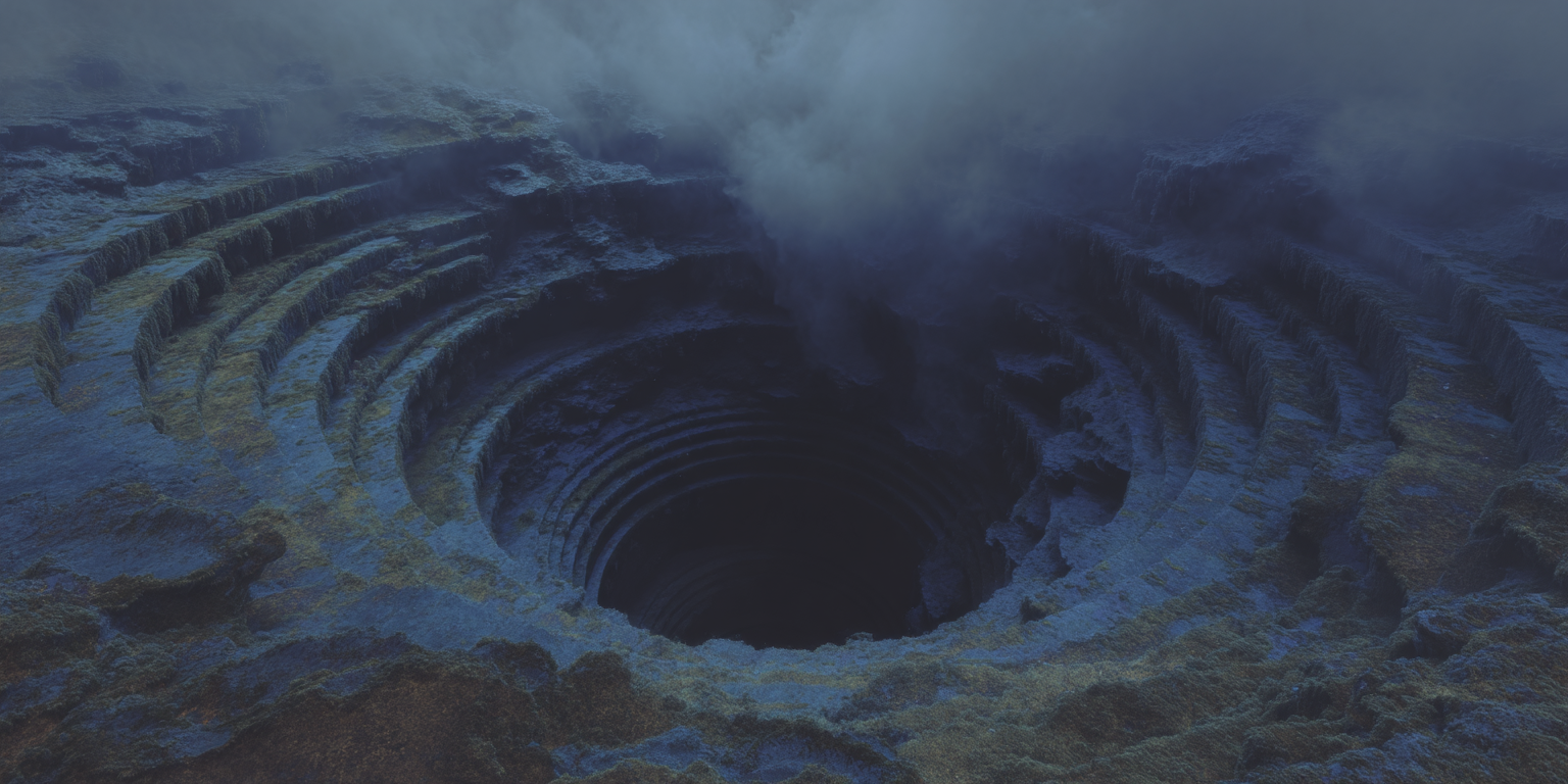 Cinematic overhead shot of an ancient stone well descending into pitch-black depth, wet mossy rings, faint mist drifting downward, desaturated cold palette, moon-rim backlight, center framing, shallow haze, subtle film grain, volumetric air, macro texture on stones, long exposure hints of falling dust, hyperreal detail, tension and stillness --chaos 5 --ar 2:1 --exp 40 --quality 4 --stylize 150