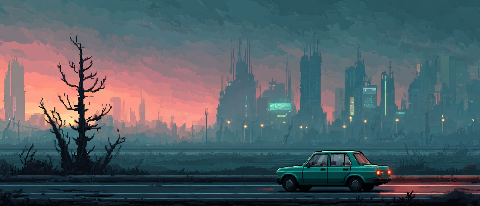 "animation": "Locked-off camera; only environmental motion: slow water shimmer, sparse car light ribbons on the bridge; loopable end frame."