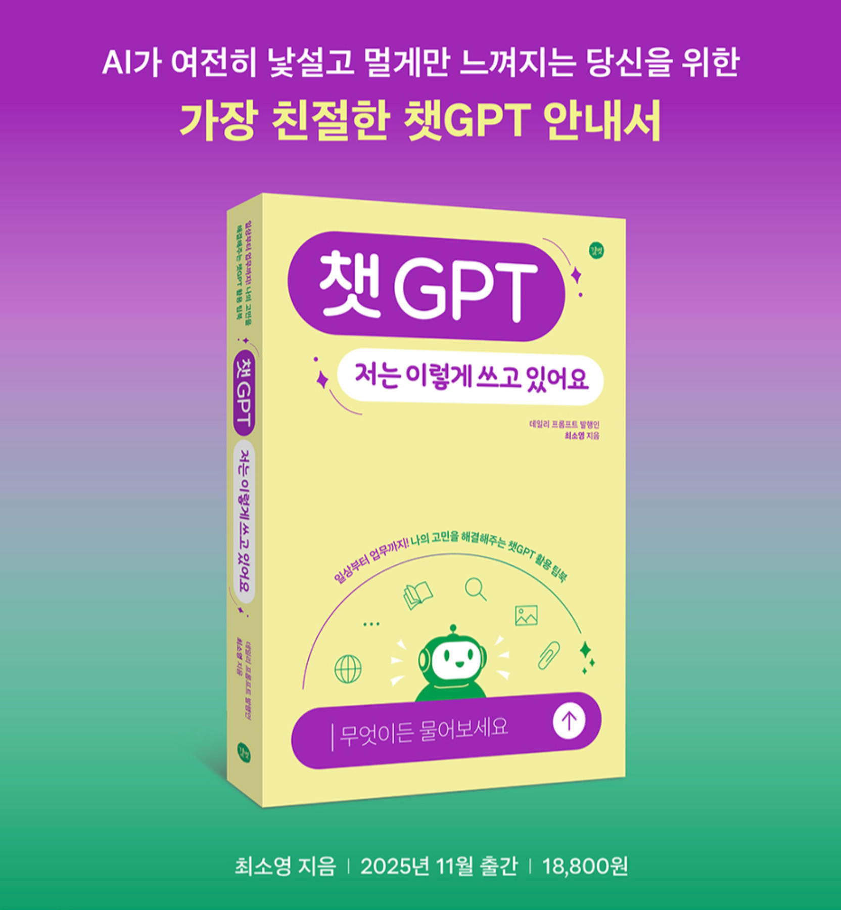 '๋ฐ์ผ๋ฆฌ ํ๋กฌํํธ'์ ์์์ด ์๋ก์ด ์ฑ <์ฑGPT, ์ ๋ ์ด๋ ๊ฒ ์ฐ๊ณ ์์ด์(๋์์ถํ ๊ธธ๋ฒ)>๋ฅผ ์ถ๊ฐํฉ๋๋ค. ์ํฉ๋ณ ์ฑGPT ํ์ฉ๋ฒ์ ๋ฌธ๋ตํ๋ฏ ๊ตฌ์ฑํ๊ณ , ๋ด์ค๋ ํฐ์ฒ๋ผ ์ ์ ์ฝํ๊ฒ ์ผ์ด์:) ์ ๋ฌด์ ์ผ์์์ ์ฑGPT๋ฅผ ๋ ๋๋ํ๊ฒ ์ฐ๊ณ ์ถ์ ๋ถ์๊ฒ ์ถ์ฒํฉ๋๋ค. ์ง๊ธ ์์ฝ ๊ตฌ๋งคํ์ธ์!