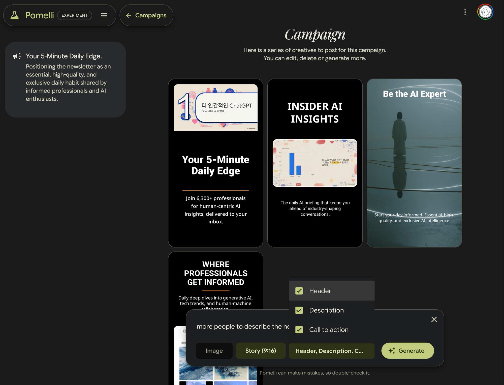 ꡬκΈμ΄ λ°νν AI λ§μΌν ν΄ Pomelli