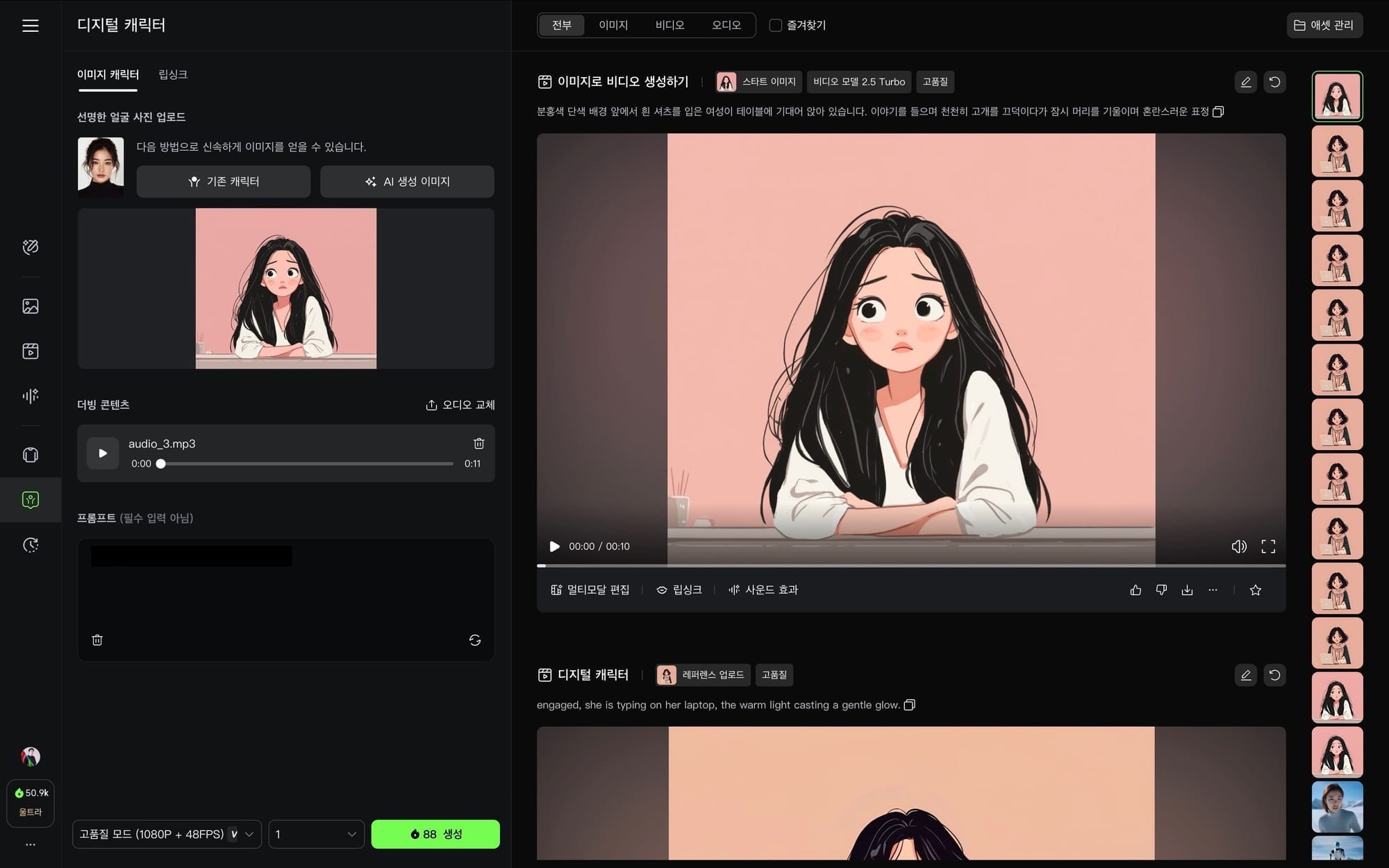 μλμ κ°μ΄ Midjourneyλ‘ μμ±ν μ΄λ―Έμ§μ Typecastμμ μμ±ν μ€λμ€ νμΌμ μ λ‘λνμ¬ μμμ μμ±ν©λλ€.