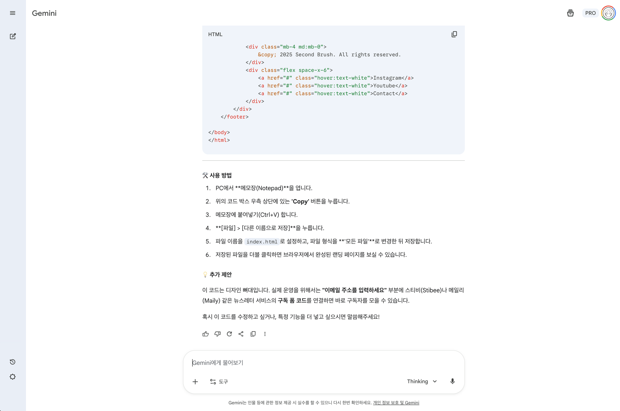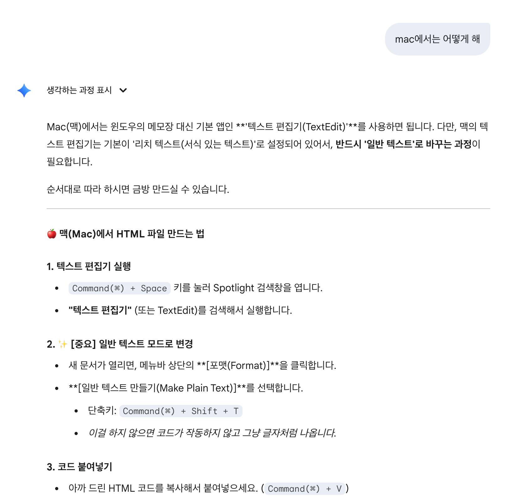 Gemini๊ฐ ์๋ ค์ค๋๋ก html ์ฝ๋๋ฅผ ๋ฉ๋ชจ์ฅ(ํ ์คํธ ํธ์ง๊ธฐ)์ ๋ถ์ฌ๋ฃ๊ณ .html๋ก ์ ์ฅํ ๊ฒฐ๊ณผ, ์๋ ์ด๋ฏธ์ง์ ๊ฐ์ด ํ์ด์ง๋ฅผ ํ์ธํ ์ ์์์ต๋๋ค.