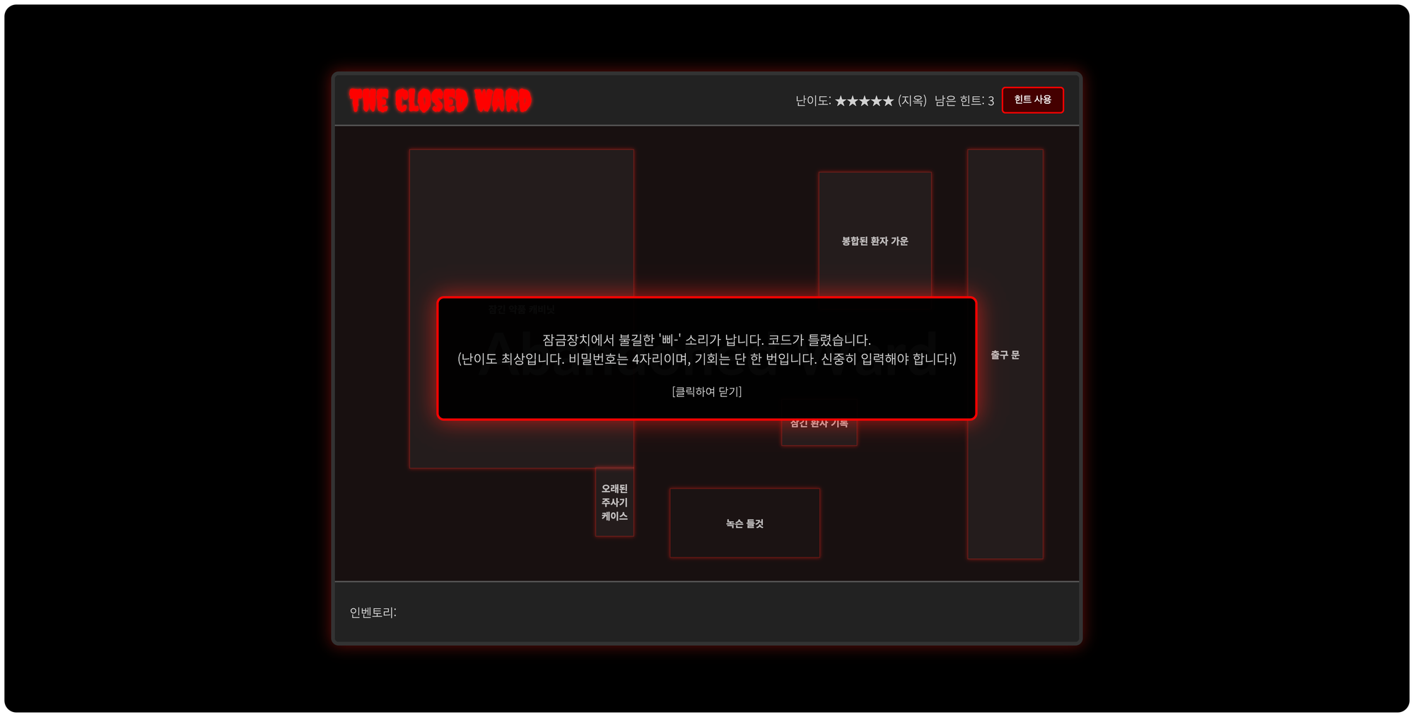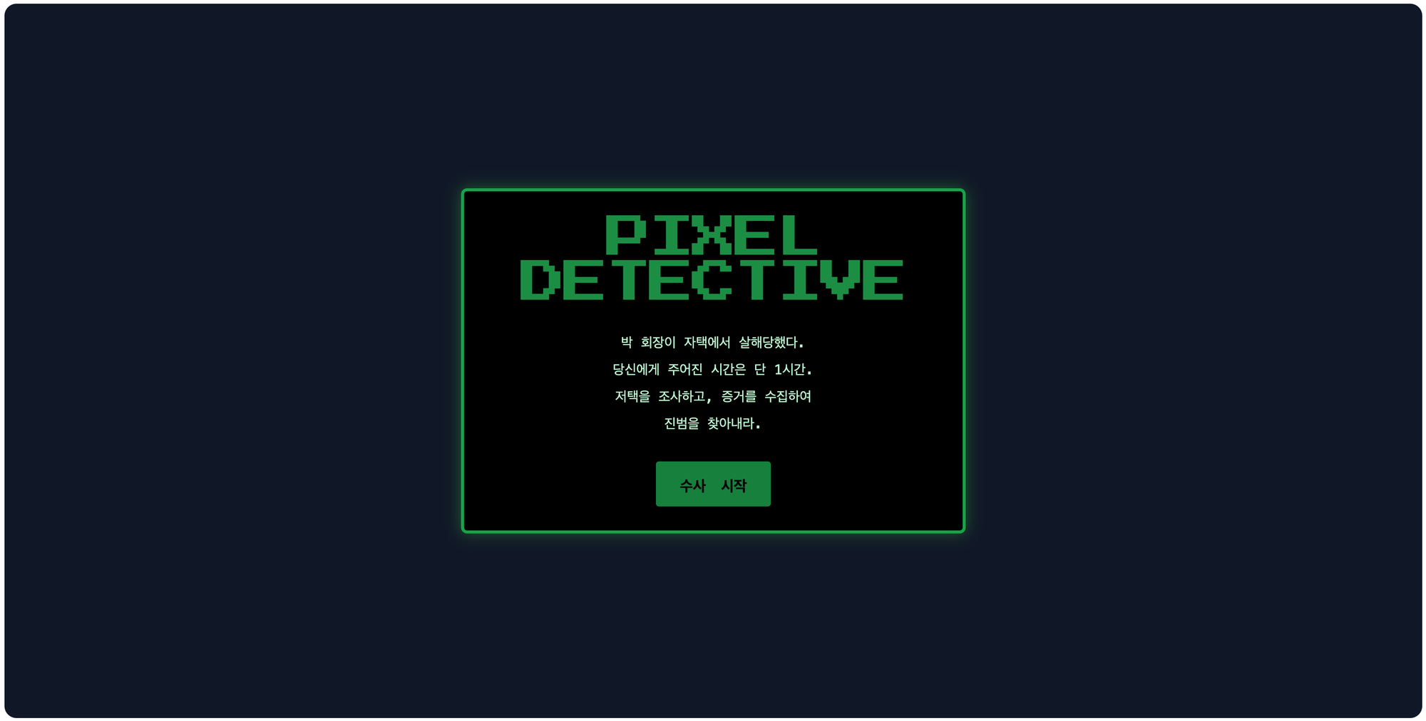 ์ฆ๊ฑฐ๋ฅผ ์์งํด์ ๋ฒ์ธ์ ์ฐพ์๋ด๋ ์ถ๋ฆฌ ๊ฒ์์ ๋๋ค. ํ ์คํธ์ ํฝ์ ๊ทธ๋ํฝ์ผ๋ก, ์ต์ํ์ ๊ทธ๋ํฝ์ผ๋ก ๊ตฌํ๋์์ต๋๋ค.