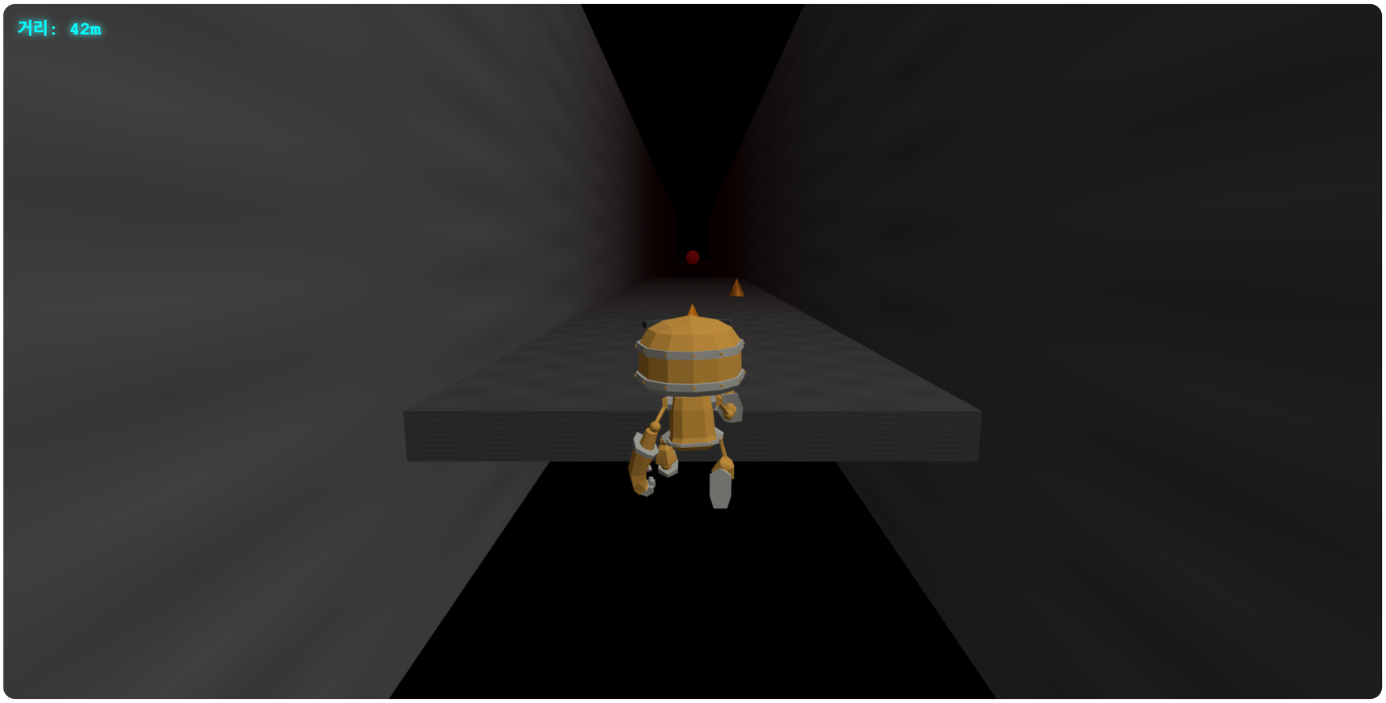 ์ฅ์ ๋ฌผ๊ณผ ๊ดด๋ฌผ์ ํผํด ๋ฉ๋ฆฌ ๋๋ง์น๋ 3D ๊ทธ๋ํฝ ๊ฒ์์ ๋๋ค.