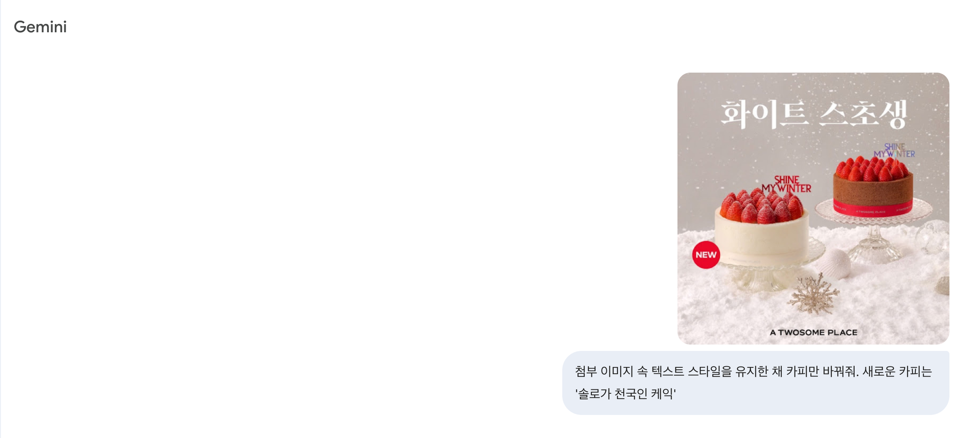 Gemini์์ ๋ค์๊ณผ ๊ฐ์ด ์ด๋ฏธ์ง๋ฅผ ์ ๋ก๋ํ๊ณ ํ๋กฌํํธ๋ฅผ ์ ๋ ฅํฉ๋๋ค.
