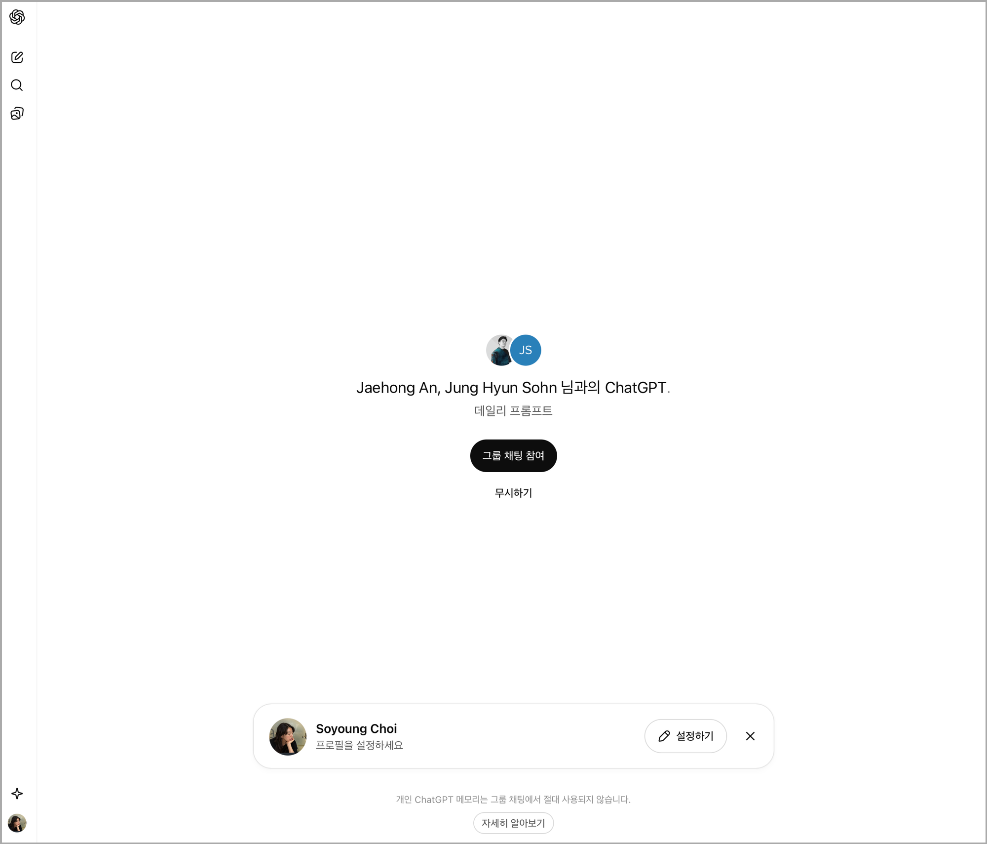 ์ค๋์ ์ฑGPT์ ๊ทธ๋ฃน์ฑํ ๊ธฐ๋ฅ์ ๋ค๋ฃน๋๋ค.