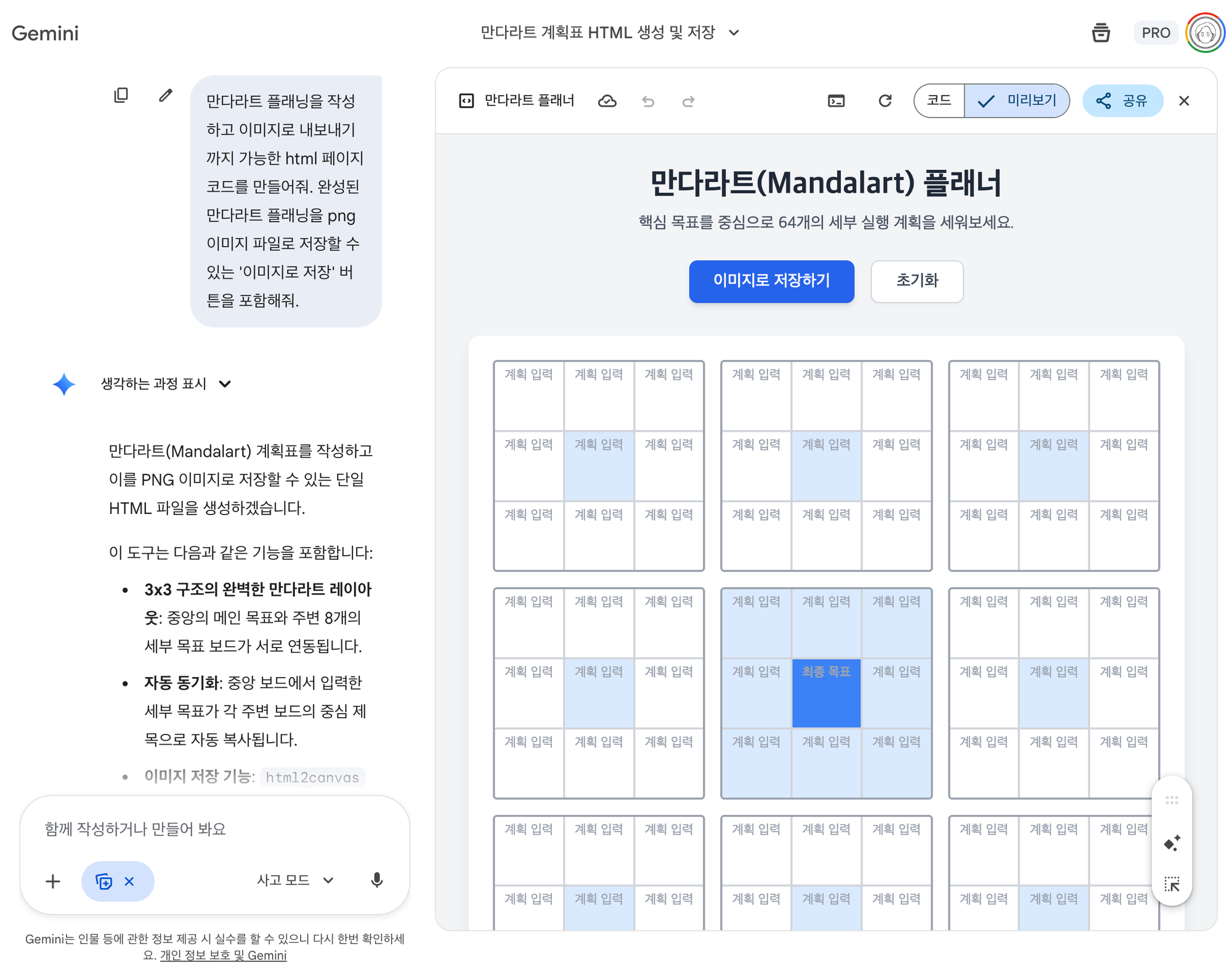 κ°μ΄λ° μΉΈμ μ λ ₯νλ©΄ ν λ리 그리λ κ°μ΄λ°μ μλ μ λ ₯λλ©°, μμ±μ΄ μλ£λ ν μ΄λ―Έμ§λ‘ μ μ₯ν μ μλ νμ΄μ§κ° λ§λ€μ΄μ§λλ€.