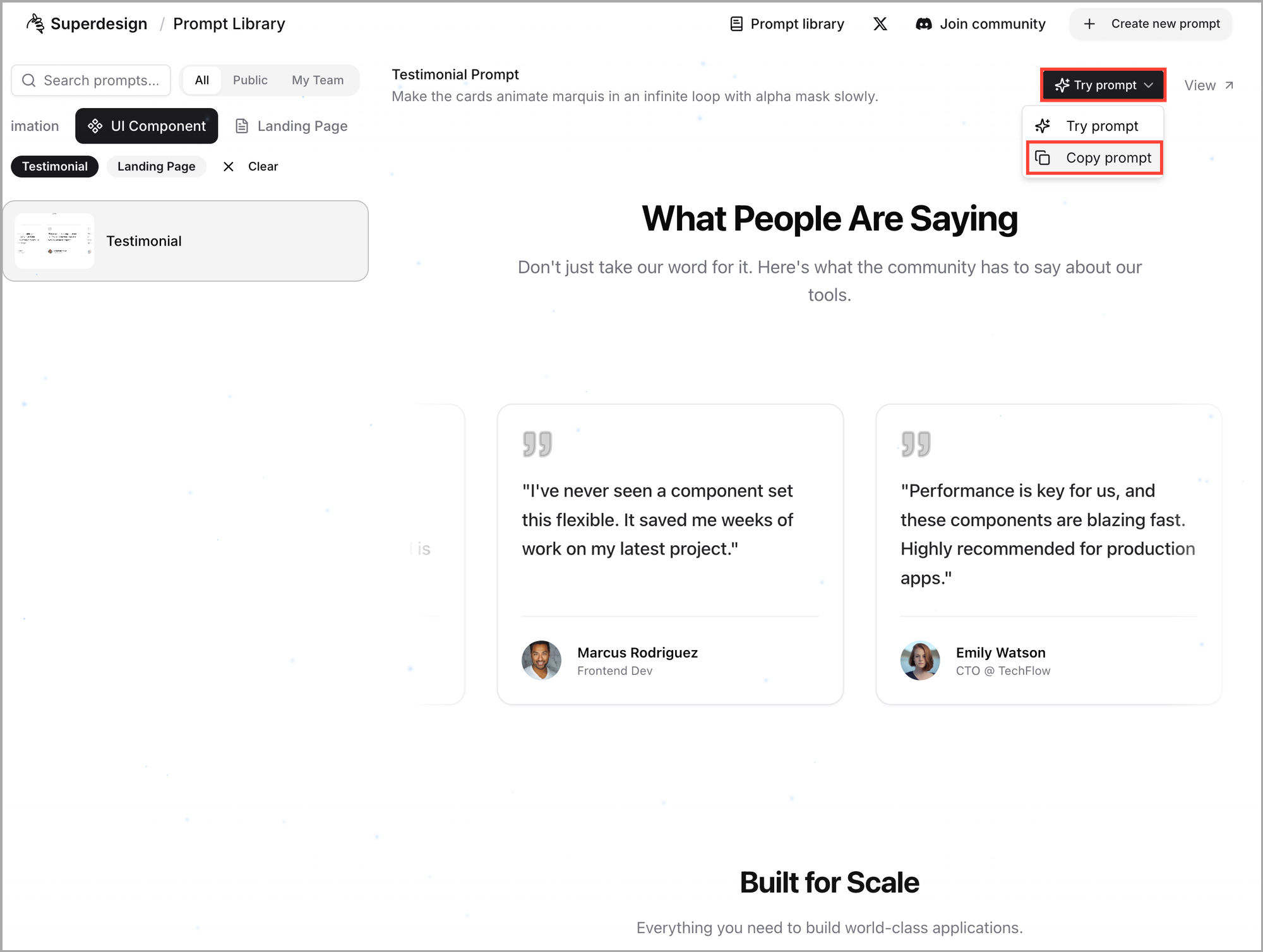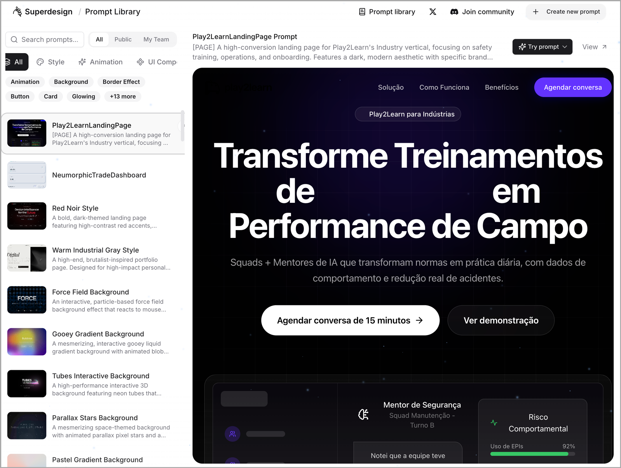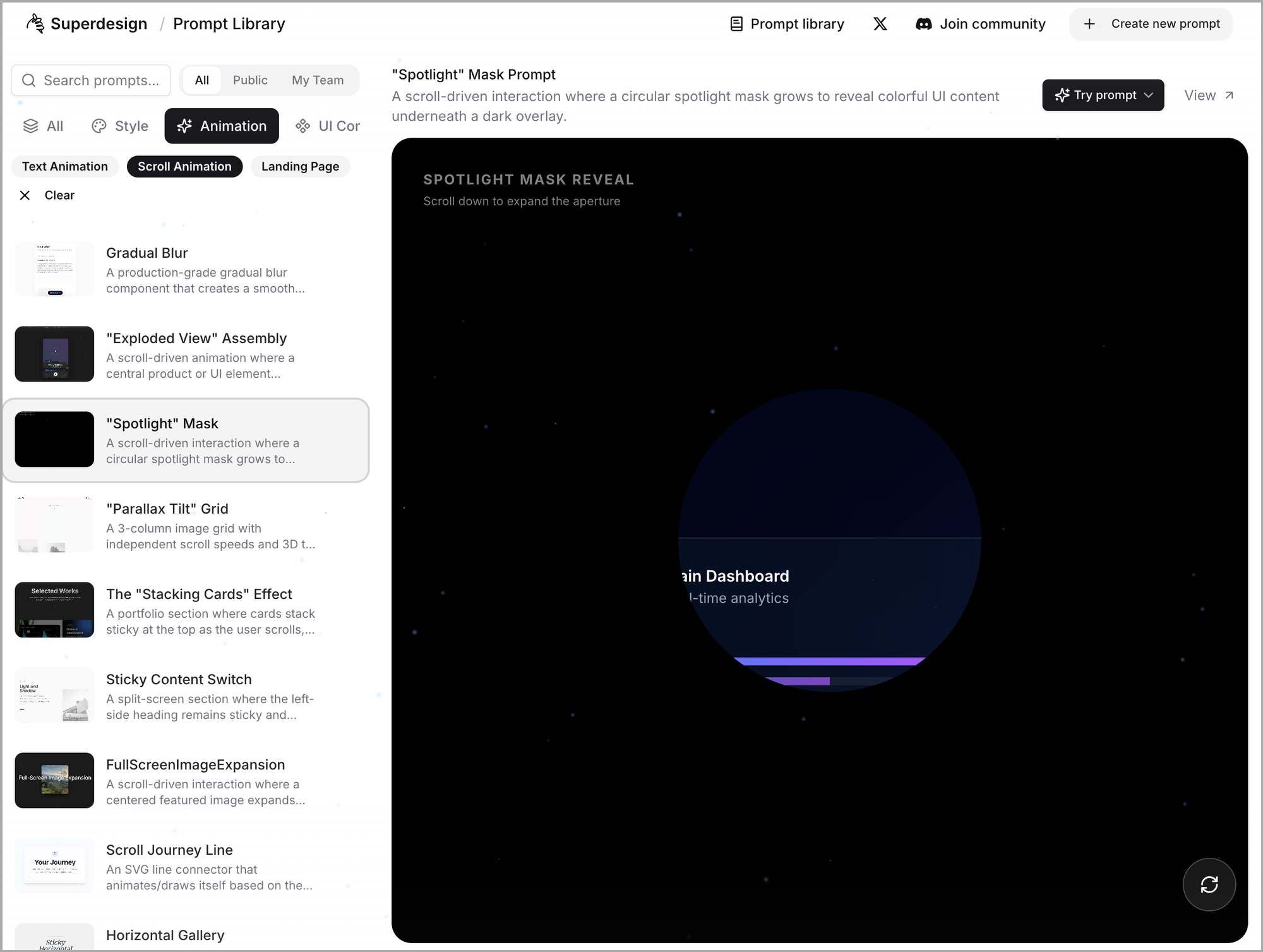 νΉμ μ€νμΌμ μ νμ ¨λ€λ©΄, 'Try prompt' λ²νΌμ ν΄λ¦νμ¬ ν둬ννΈλ₯Ό 볡μ¬ν μ μμ΅λλ€.