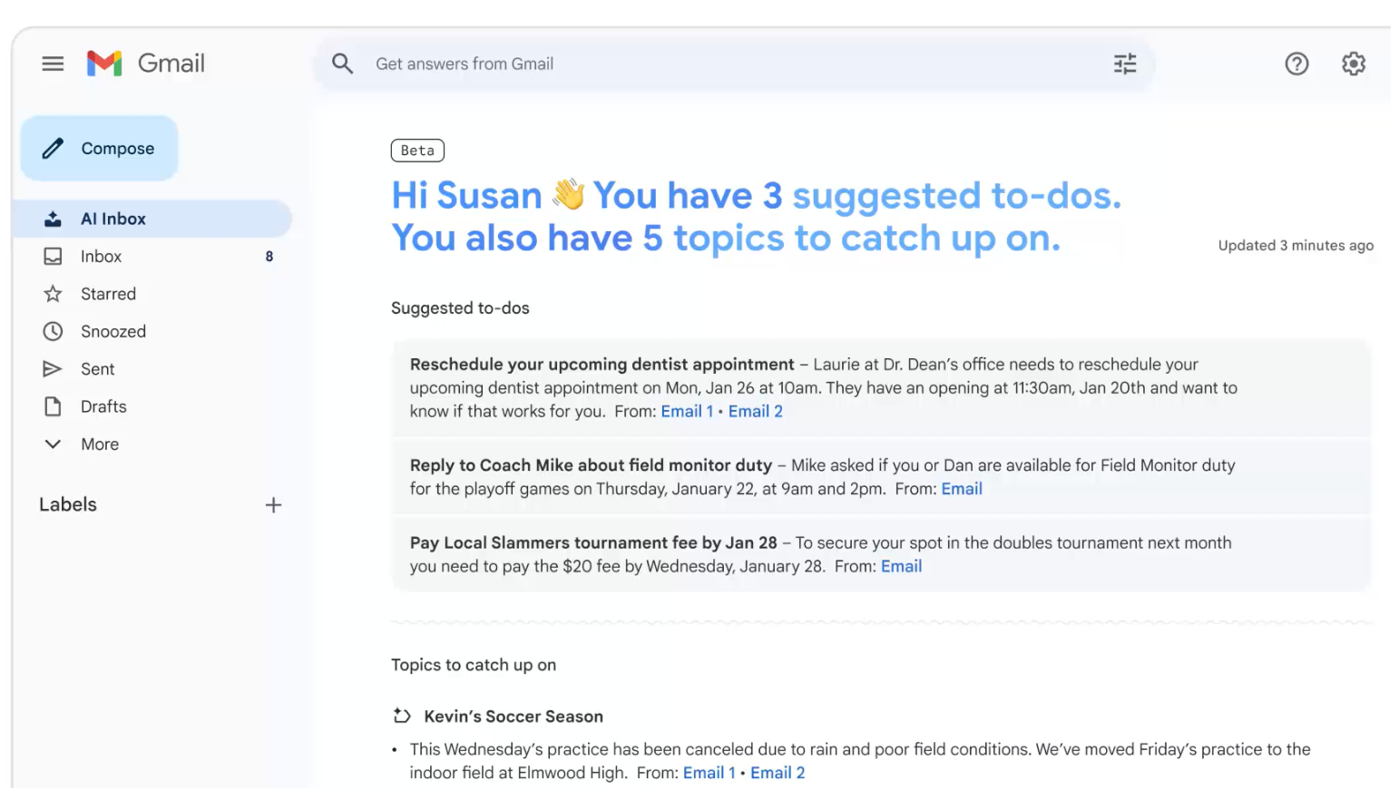 ์ค๋์ Gmail์ ์๋กญ๊ฒ ์ ๋ฐ์ดํธ๋ AI ๊ธฐ๋ฅ์ ๋ค๋ฃน๋๋ค.