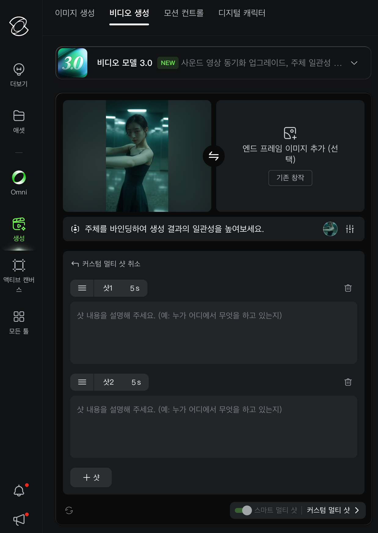 κΈ°μ‘΄ Kling 3.0 λͺ¨λΈμ μ¨λ μΈλ¬Όμ μΌκ΅΄μ΄ κ±°μ λ°λμ§ μμ§λ§, μλ‘μ΄ λͺ¨λΈμ μμμ 15μ΄ λ΄μ μ¬λ¬ μ₯λ©΄μ μμ±ν΄μ£ΌκΈ° λλ¬Έμ κ° μ₯λ©΄μ λμΌν μΈλ¬Όμ΄ λ±μ₯ν μ μλλ‘, λ€μκ³Ό κ°μ μ€μ μ μΆμ²λ립λλ€.