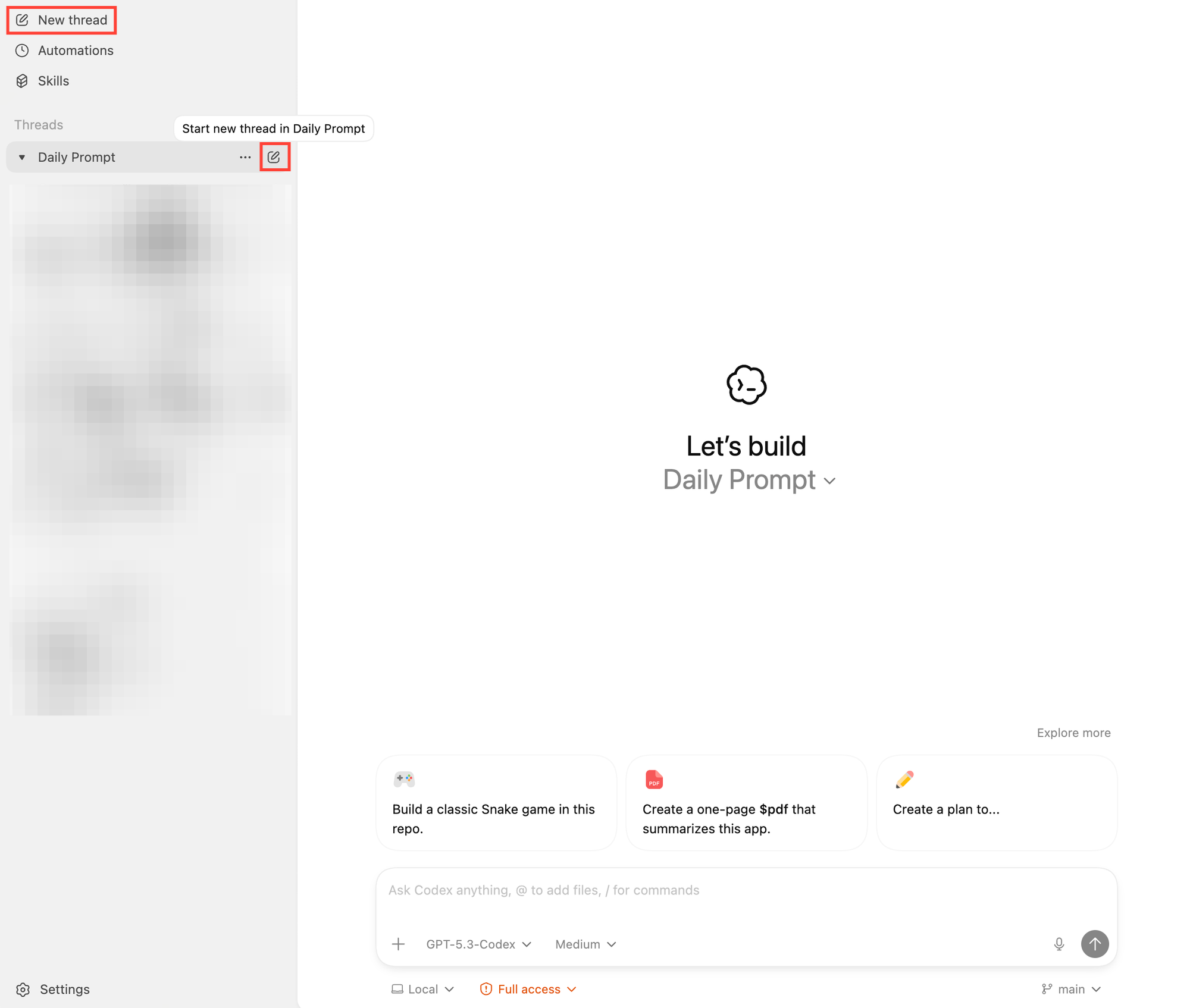 λμΌν ν둬ννΈλ₯Ό μ±GPTμ μ λ ₯νμ λ λμ§λ§, Codexλ₯Ό μ¬μ©νλ λ°©λ²λ μμ΅λλ€. μ λ Codex λ°μ€ν¬ν± μ±(λ§₯ OSλ§ κ°λ₯)μ μ¬μ©νκ³ μλλ°μ, AI μ½λ© μμ΄μ νΈλ₯Ό μ¬μ©νκ³ μΆμ§λ§ κ°λ°μ νκ²½μ΄ μ΅μνμ§ μμ λΆκ» κ°μ₯ μΆμ²λ립λλ€.