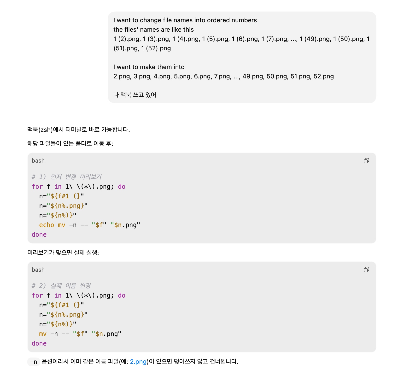 - Codexμκ² ν΄λ κ²½λ‘λ₯Ό μλ €μ£Όκ³ , "λκ° ν΄μ€"λΌκ³ νλ©΄, Codexκ° νμΌλͺ μ ν λ²μ λ°κΏμ€λλ€. μ λ μ΄λ₯Ό μμ©ν΄μ νΉμ ν΄λμ μ΄λ―Έμ§/μμ /μμ νμΌμ΄ μ μ₯λλ©΄, νμΌλͺ μ μλμΌλ‘ λ°κΎΈκ²λ μ€μ νμμ΅λλ€.