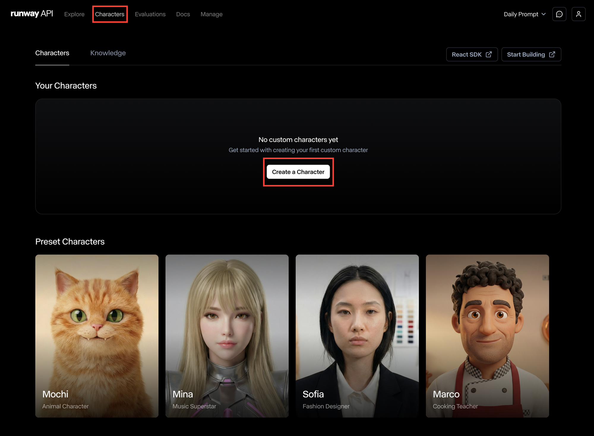 μ€λμ Runway Charactersλ₯Ό λ€λ£Ήλλ€.