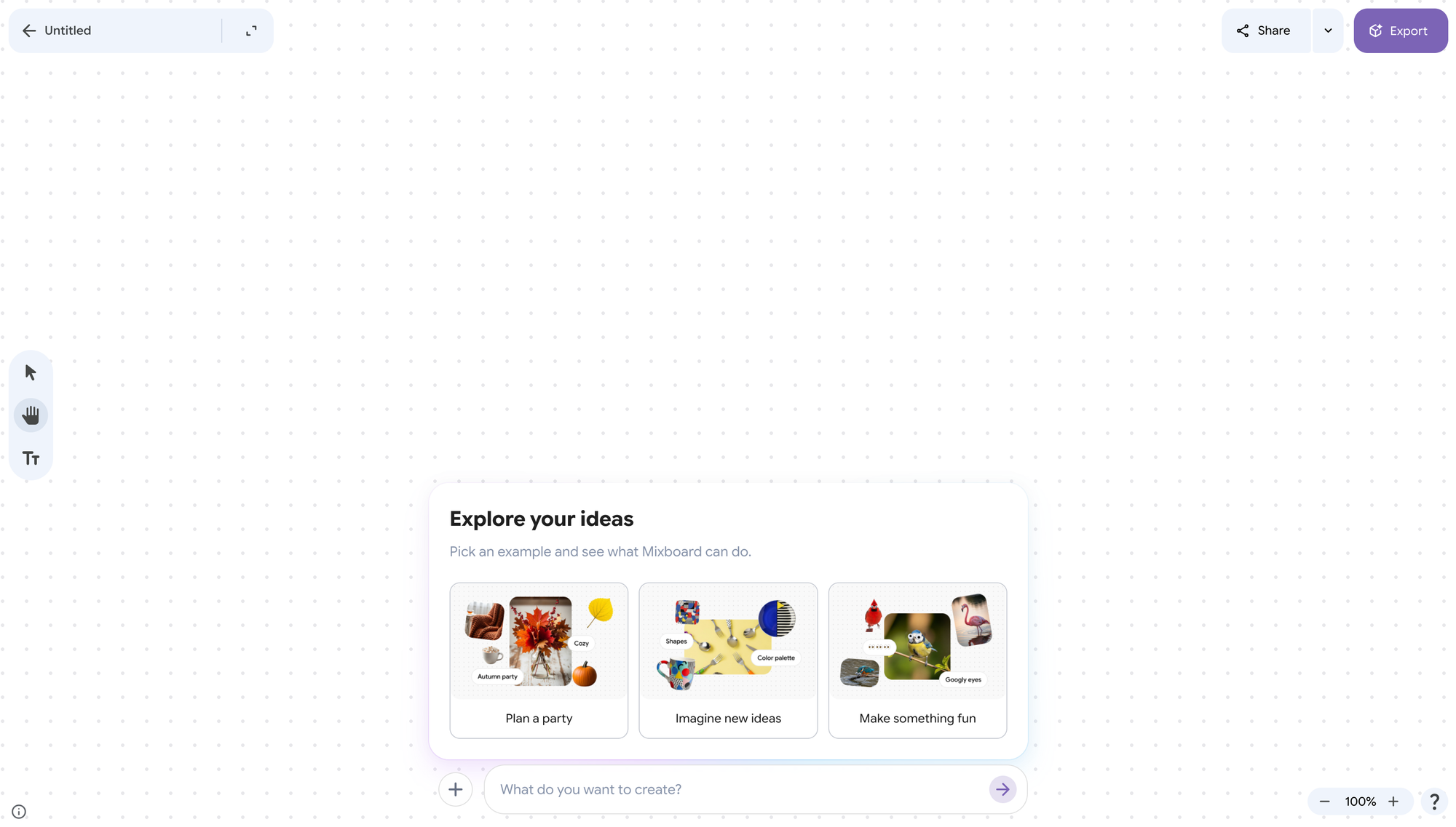๋ ํผ๋ฐ์ค ์ด๋ฏธ์ง๊ฐ ์๋ค๋ฉด, Mixboard์ ๋๋๊ทธ ์ค ๋๋กญ์ผ๋ก ์ ๋ก๋ํ ๋ค ํ๋กฌํํธ๋ฅผ ์ ๋ ฅํฉ๋๋ค.