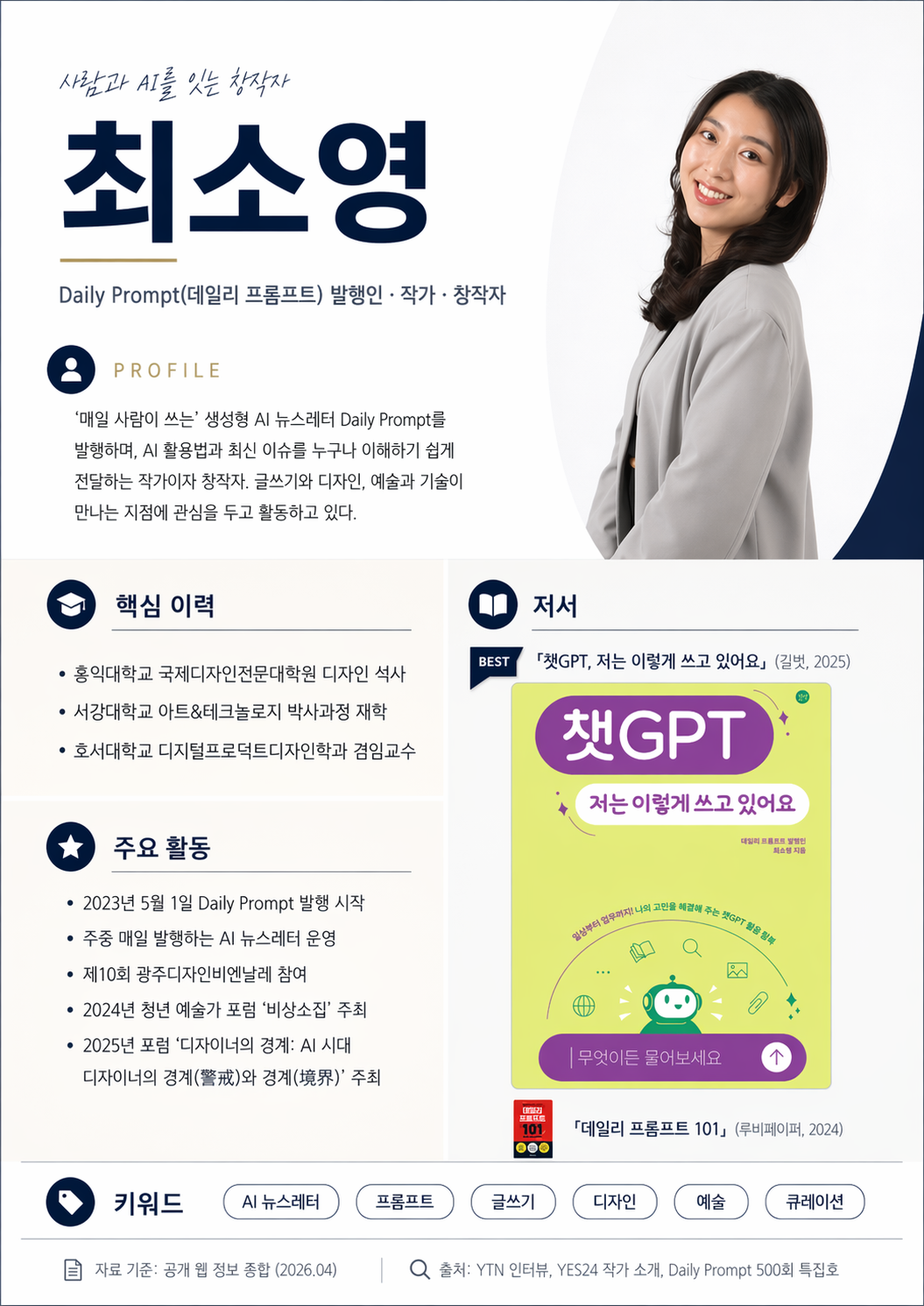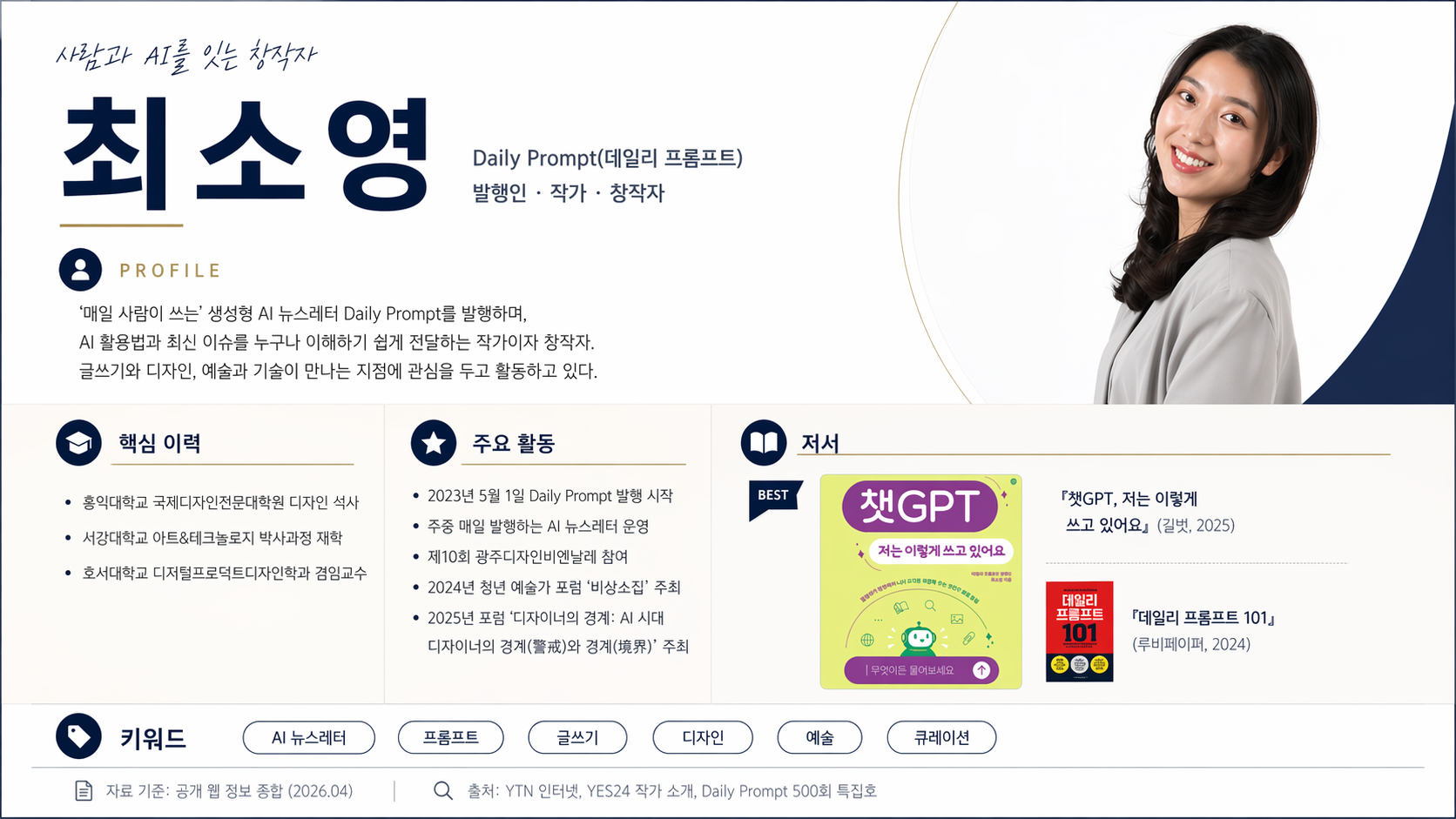 ๋ฐ์ผ๋ฆฌ ํ๋กฌํํธ 734ํย |ย 2026.04.23. ๋ฐํย |ย ๋ฐํ์ธ ์ต์์ย |ย ํ์ ๋ฌธ์