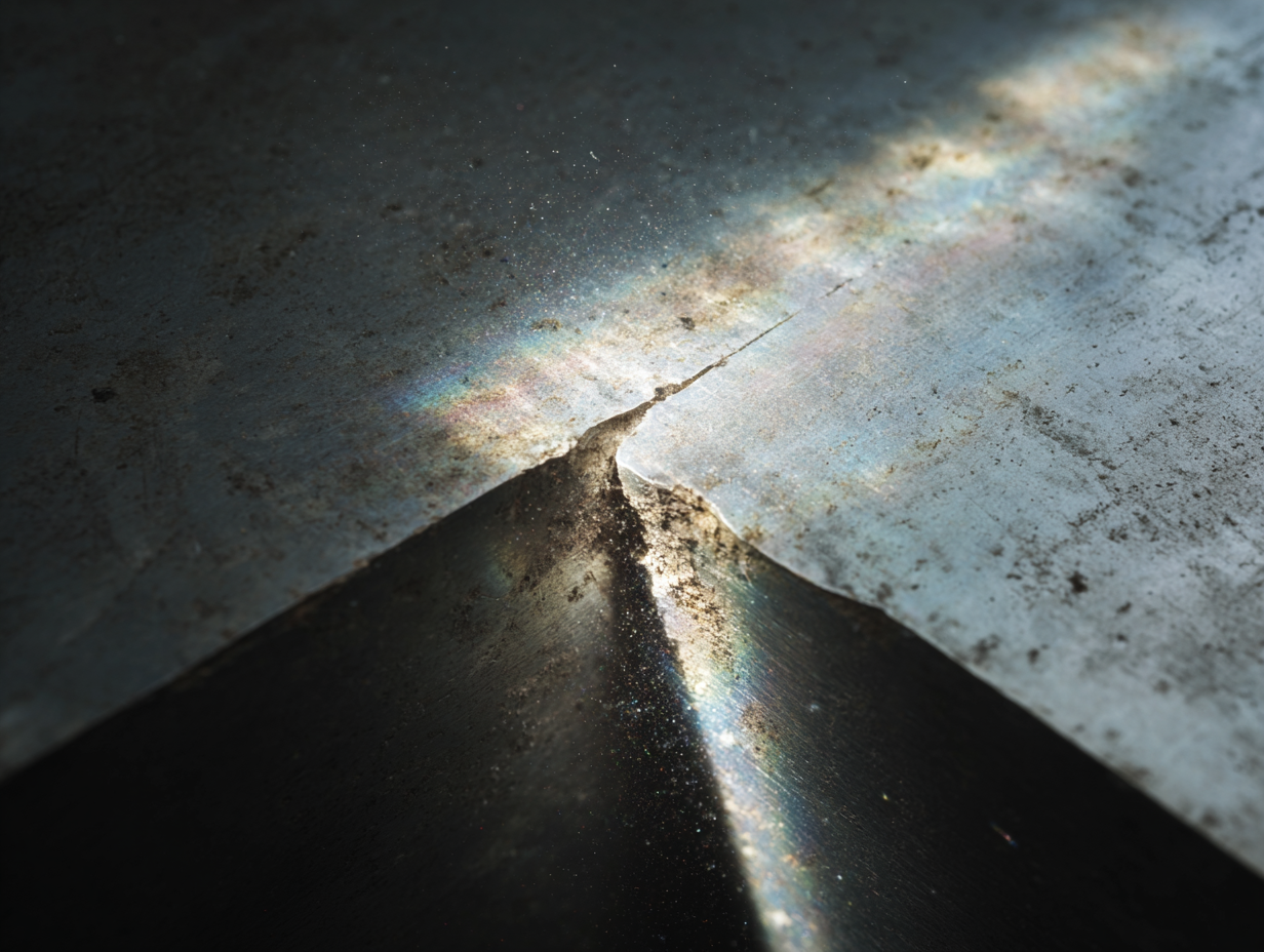 minimalist macro scene of two perfectly aligned planes with a hairline misalignment, a thin seam where light softly leaks, dust motes suspended in the beam, subtle moirΓ© interference patterns, the feeling of a paused click, tender not scary, high detail macro photography, poetic realism, no readable text --chaos 5 --ar 4:3 --raw
